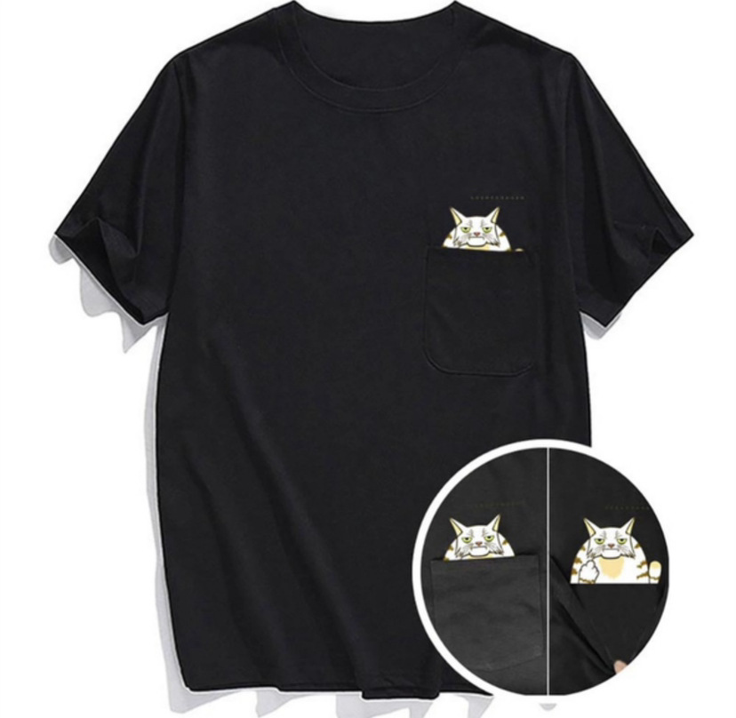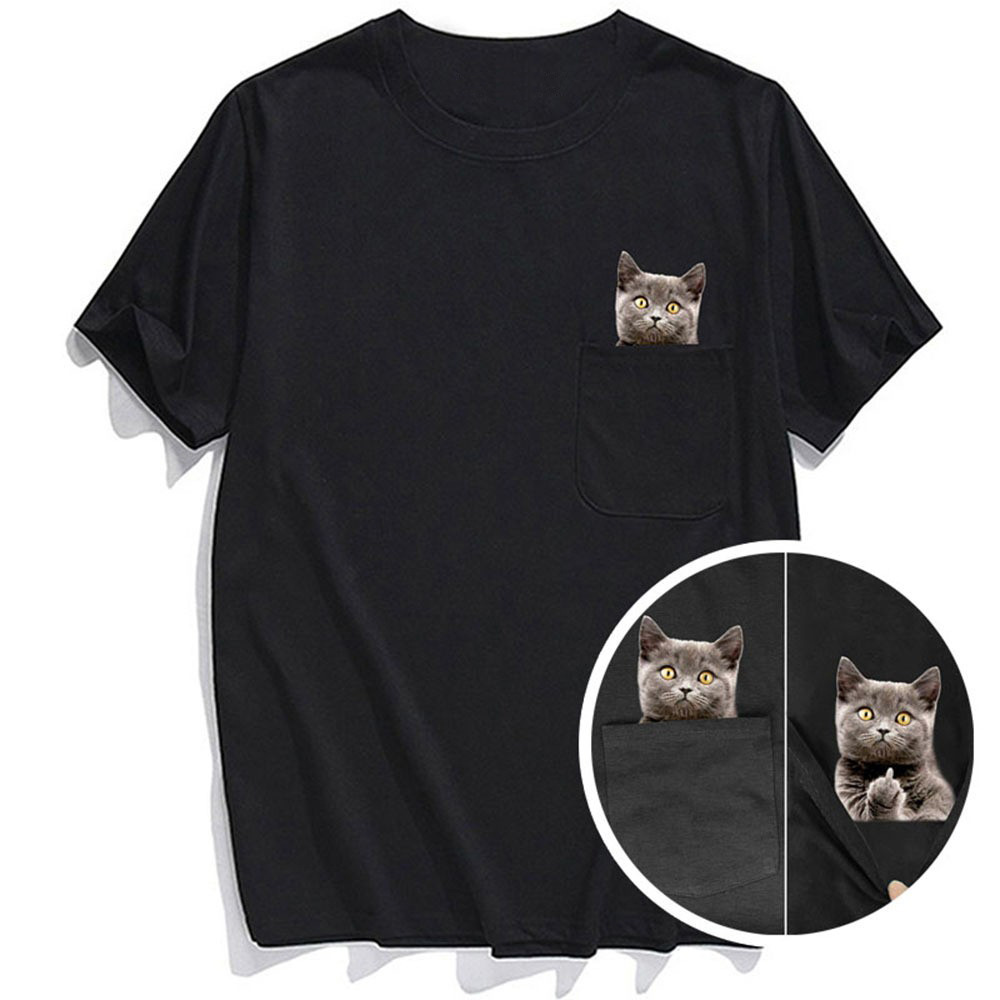 Главная страница > Карманная футболка с короткими рукавами и котом, мужская рубашка CL, футболка с котом, бурый медведь, средний палец, нашивка с принтом, карман, забавная новинка, домашнее животное