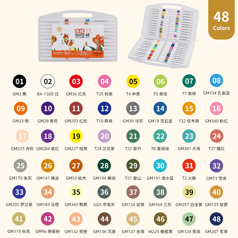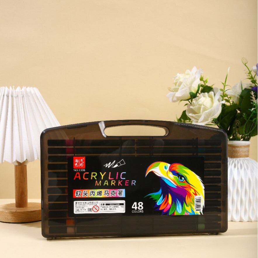Акриловый маркер с мягким наконечником и черным стержнем [48 цветов]