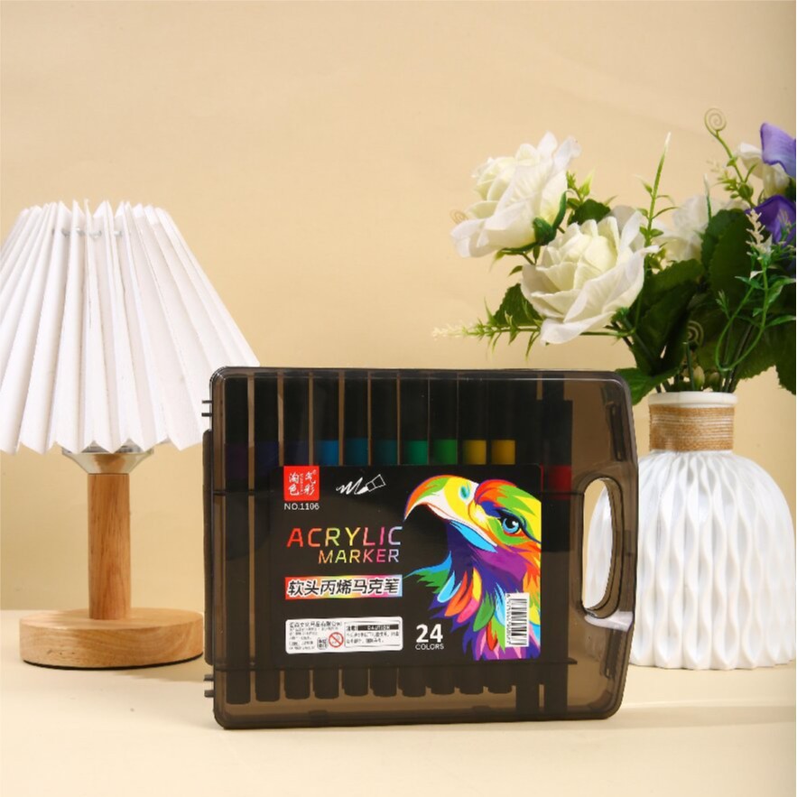 Акриловый маркер с мягким наконечником и черным стержнем [24 цвета]