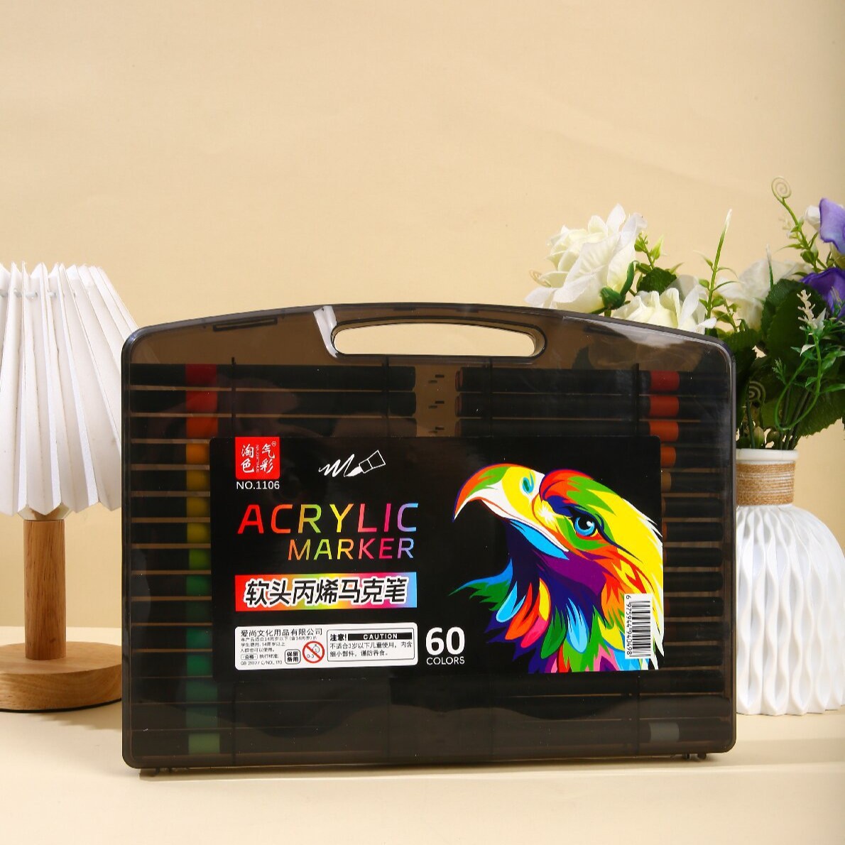 Маркер с мягким наконечником из акрила, черный корпус [60 цветов]