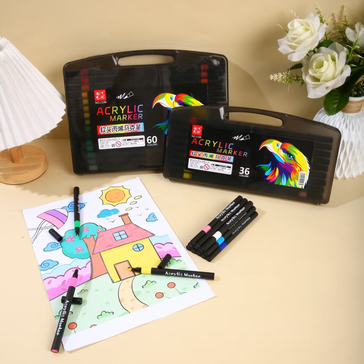 Главная страница > Новая мягкая голова черная коробка акриловая маркерная ручка быстросохнущий цвет не прозрачная бумага для детей diy граффити рисование цветная ручка
