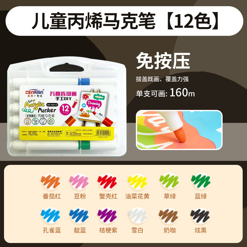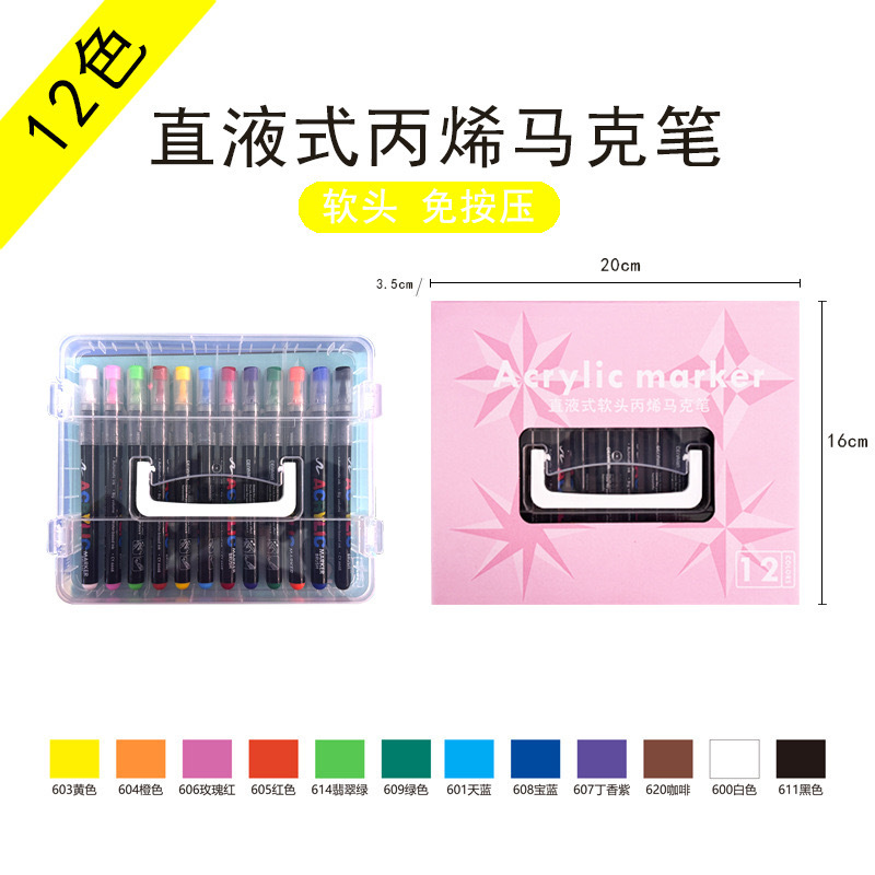 12 цветов [Акриловая жидкая краска с мягким наконечником] - Цвет стержня случайный