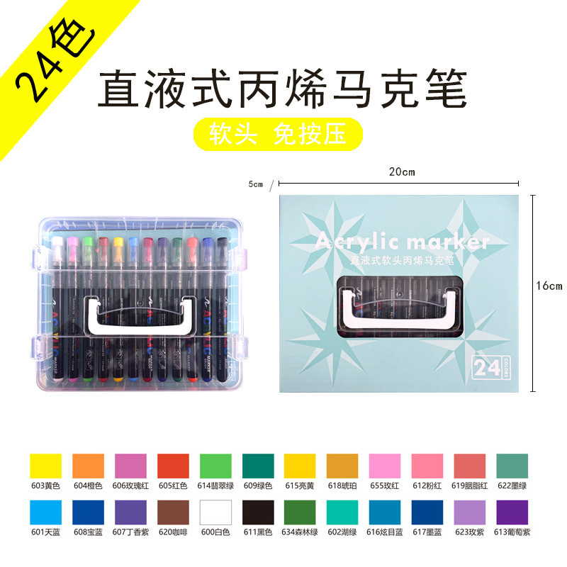 24 цвета [Акриловая жидкая краска с мягким наконечником] - Цвет стержня случайный