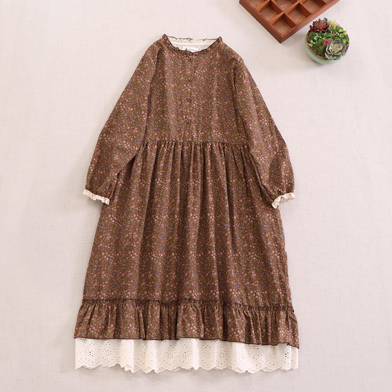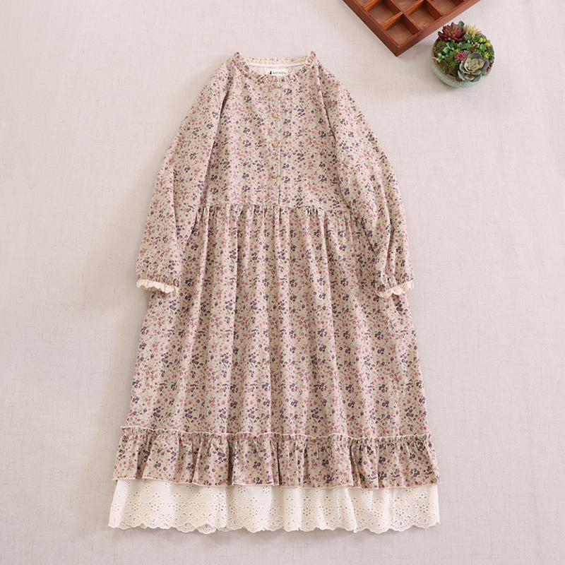 Женское платье Мори в японском стиле, просторная подходящая ко всему кружевная облегающая длинная юбка-качели с художественным цветочным принтом, Новое поступление на весну