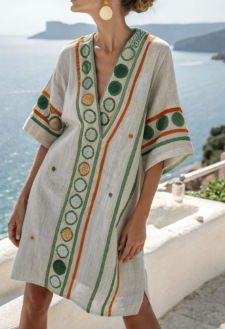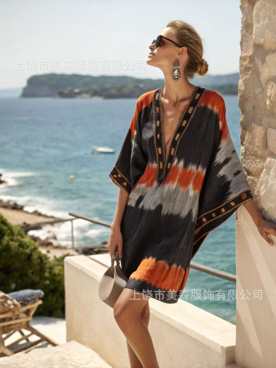 Главная страница > Летнее платье для отдыха 2025 года, европейско-американский стиль, свободного кроя, с принтом, V-образный вырез, женское, повседневное, для Amazon.