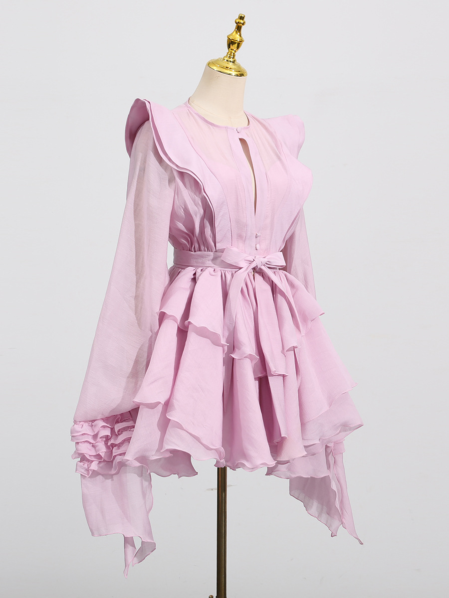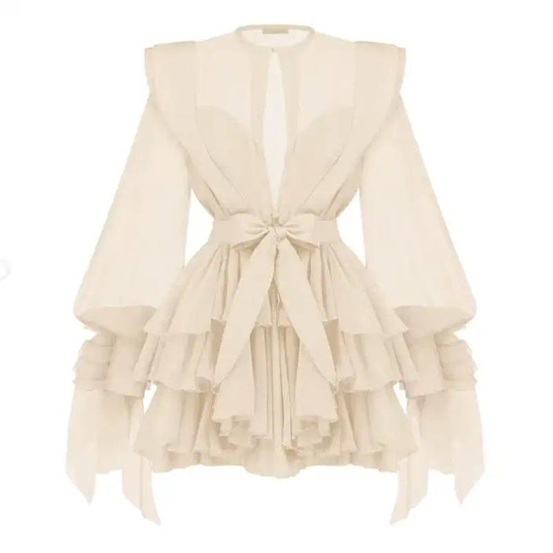 Платье с рукавами-фонариками и рюшами для женщин, новинка осени 2025, элегантное, простое, повседневное, модное, пляжное, короткое платье
