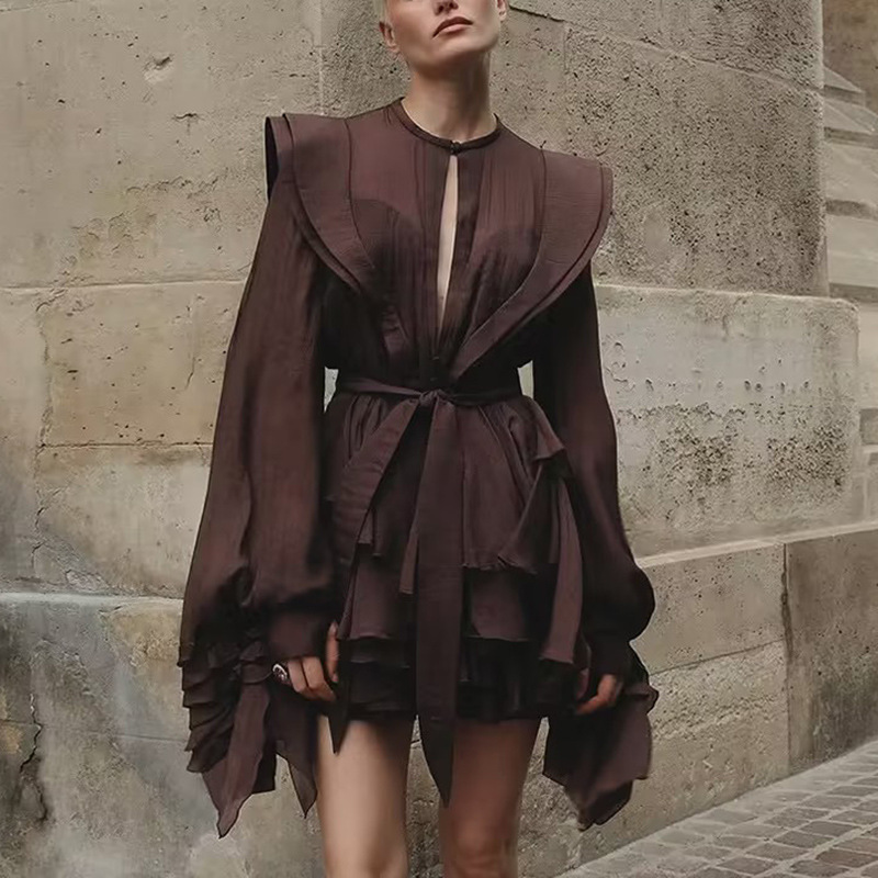 Главная страница > Платье с рукавами-фонариками и рюшами для женщин, новинка осени 2025, элегантное, простое, повседневное, модное, пляжное, короткое платье