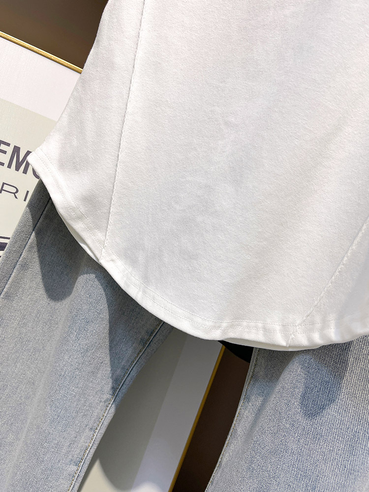 Главная страница > Шикарный хлопчатобумажный изогнутый нижний подол футболка с короткими рукавами летняя мода иностранная стройная шерсть нерегулярная рыбная кость