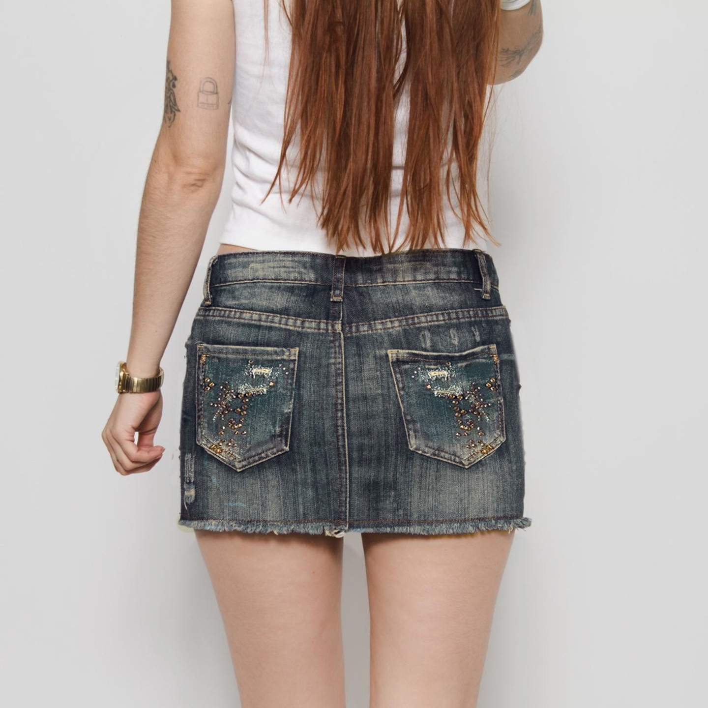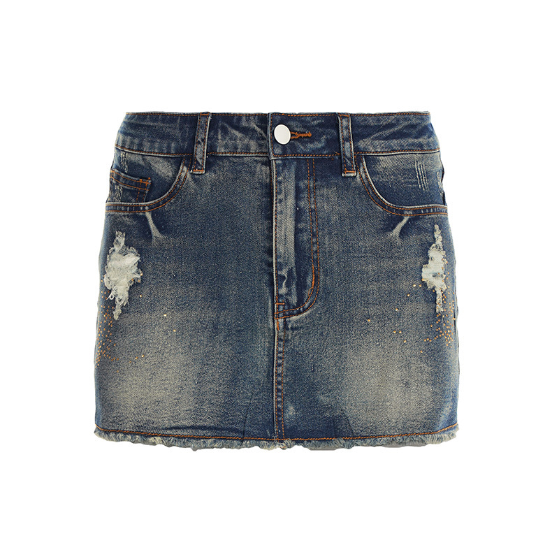 Главная страница > Сексуальная молодежная стильная короткая юбка с бриллиантовым отверстием, облегающая бедра, американская уличная тонкая джинсовая юбка