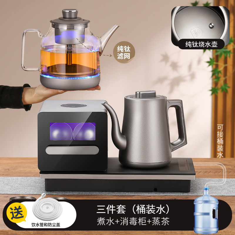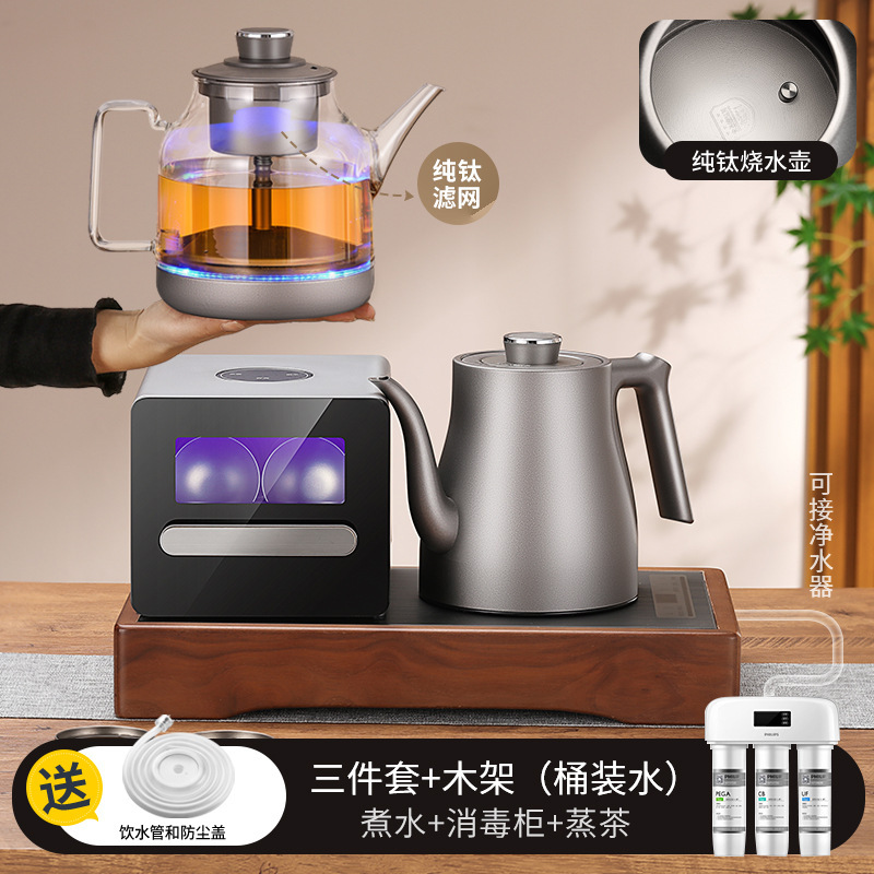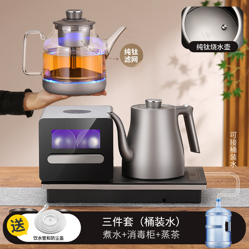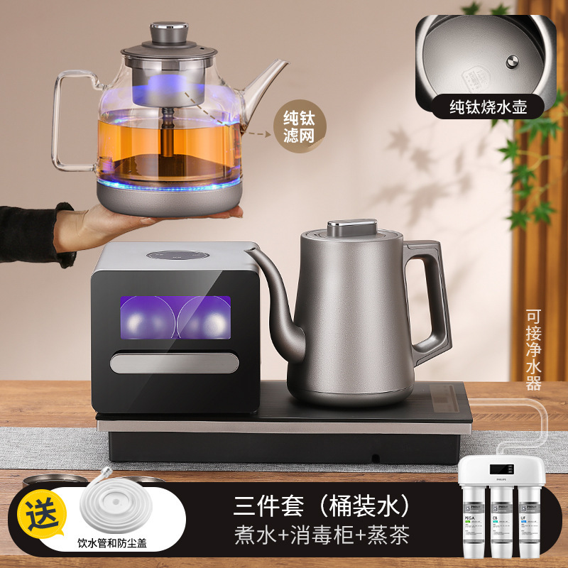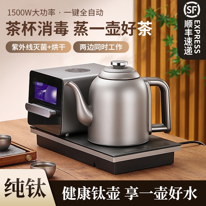 Полностью автоматический электрический чайник с нижней загрузкой для заваривания чая со стерилизацией и встроенной чайной плитой из нержавеющей стали.