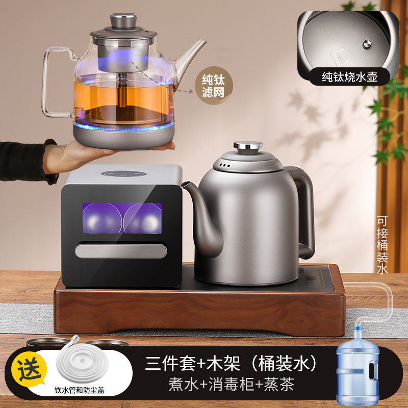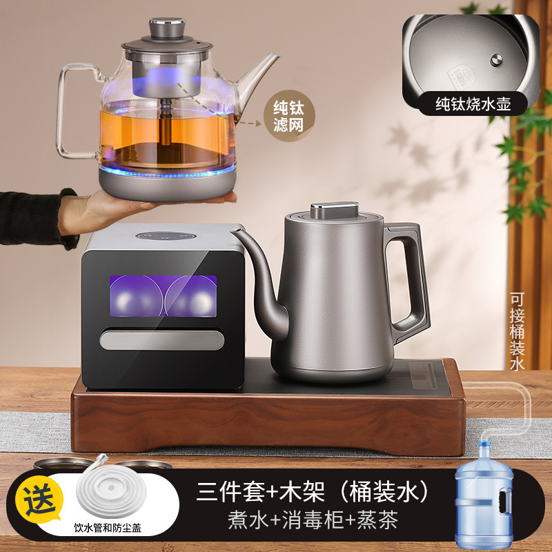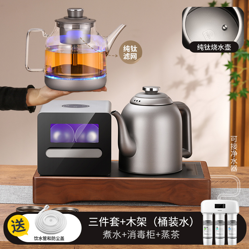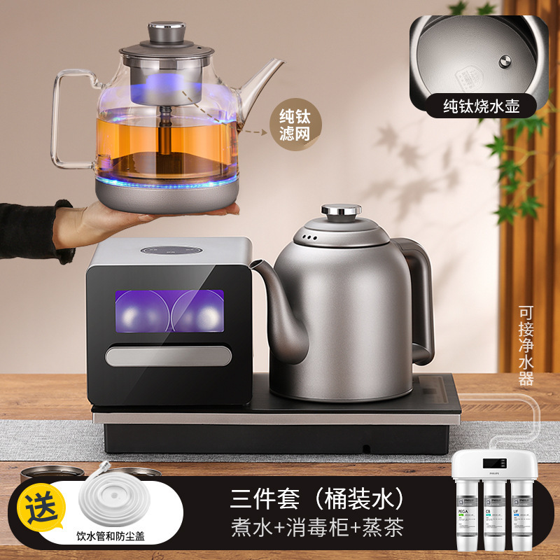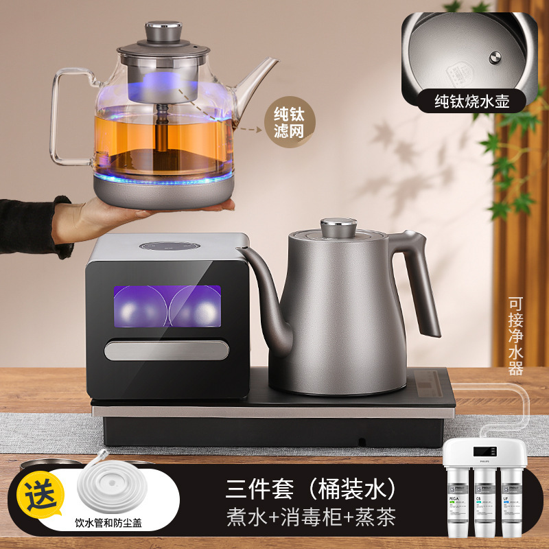 Полностью автоматический электрический чайник с нижней загрузкой для заваривания чая со стерилизацией и встроенной чайной плитой из нержавеющей стали.