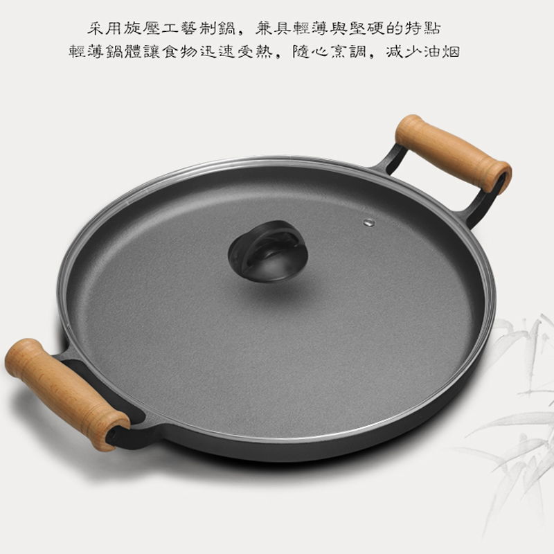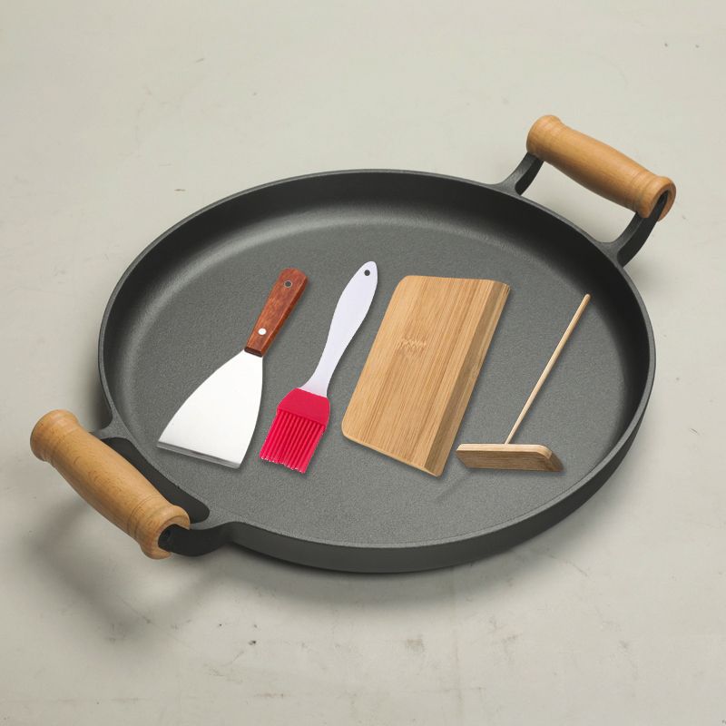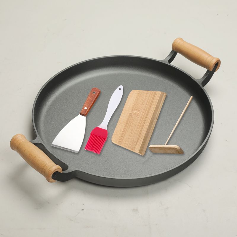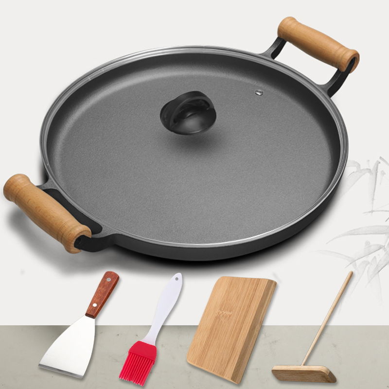 Сковорода для блинов 33 см с железной ручкой [набор из четырех предметов со стеклянной крышкой