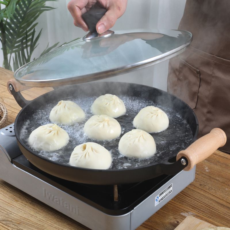 Сковорода диаметром 30 см с деревянной ручкой [стеклянная крышка, набор из четырех штук]