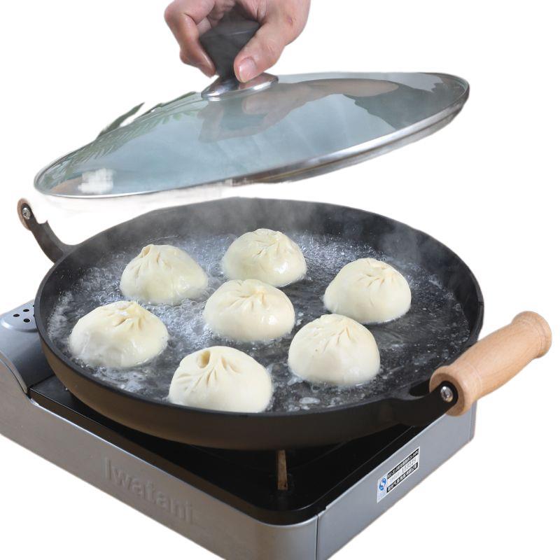 Сковорода для блинов 30 см с железной ручкой [набор из четырех предметов со стеклянной крышкой