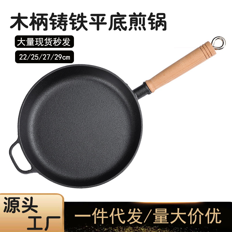 Чугунная сковорода для домашнего использования, сковорода с антипригарным покрытием без покрытия, утолщенный чугунный вок, сковорода для яиц, сковорода для стейков, сковорода для блинов.