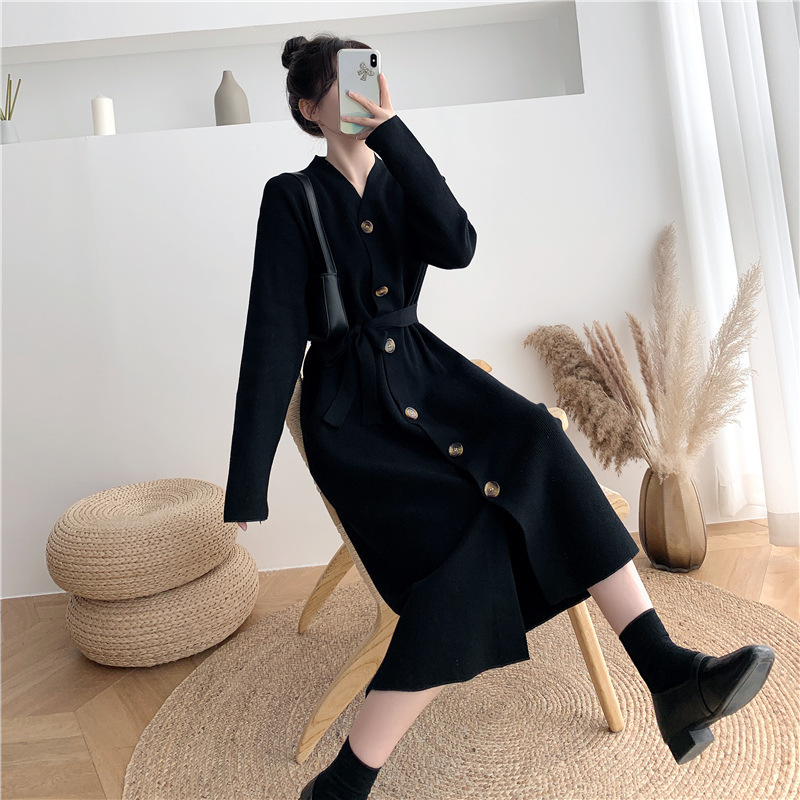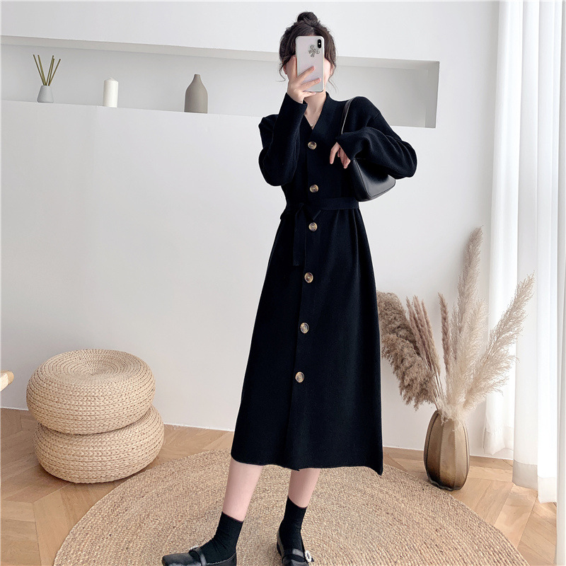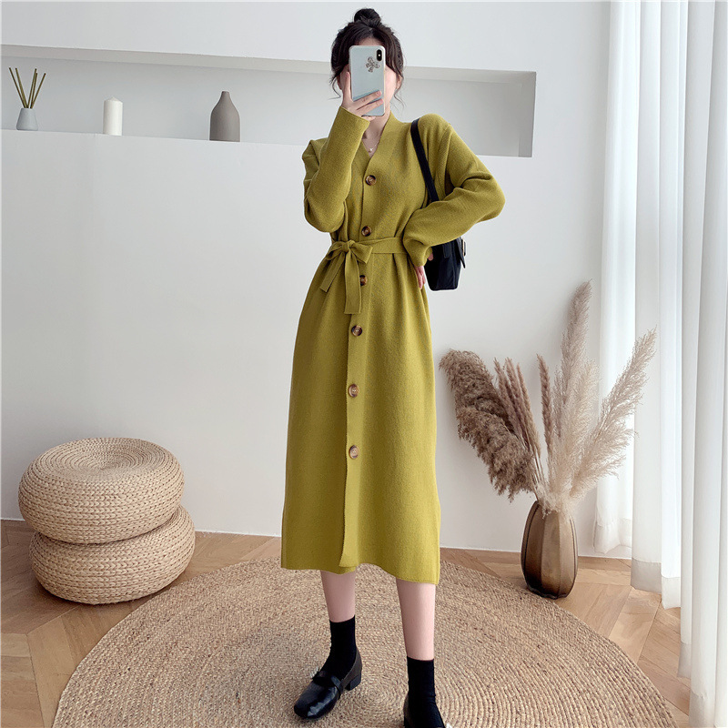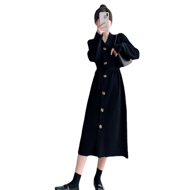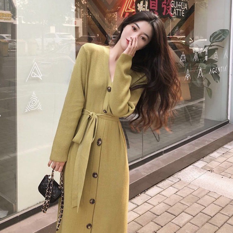Главная страница > Длинный свитер в японском и корейском стиле, женский свободный Однотонный свитер с V-образным вырезом, свободный Однотонный свитер с V-образным вырезом, женский кардиган