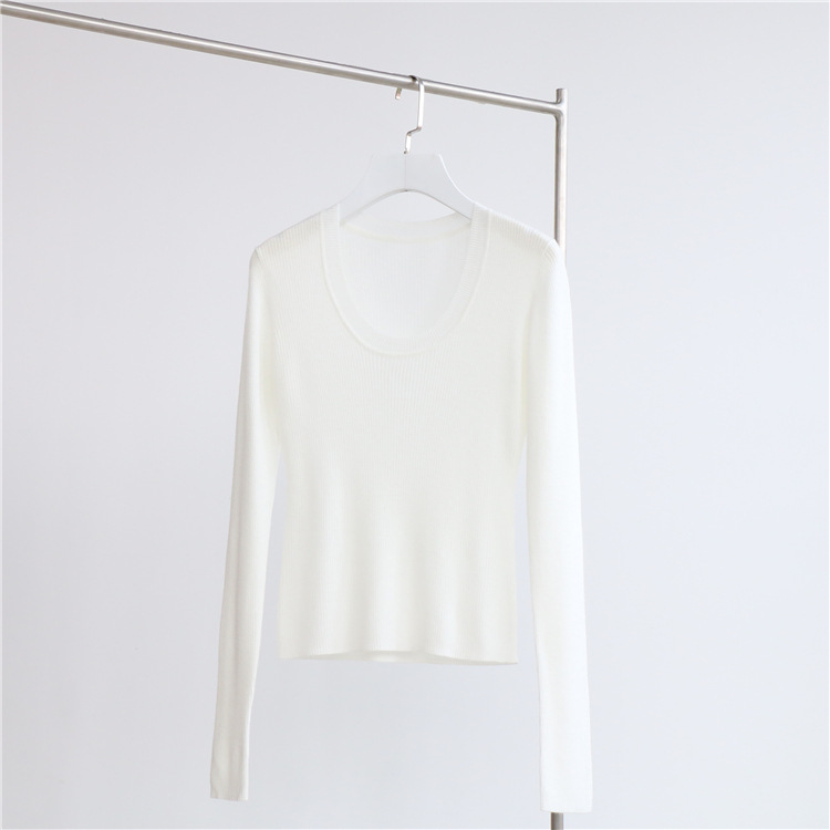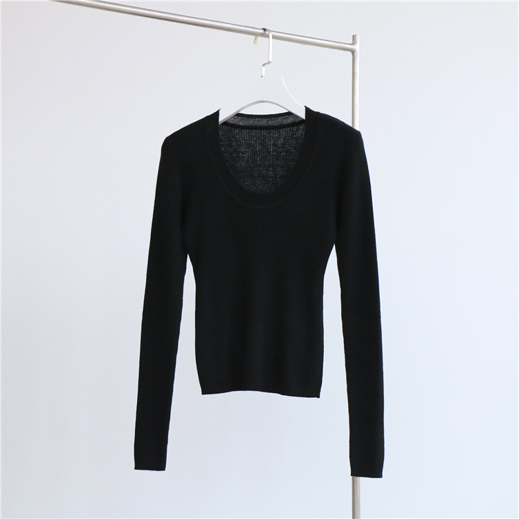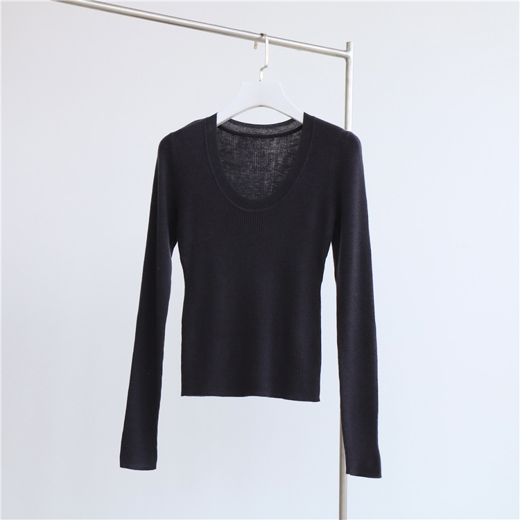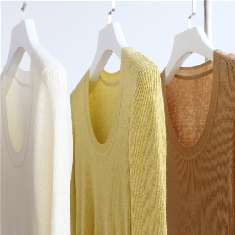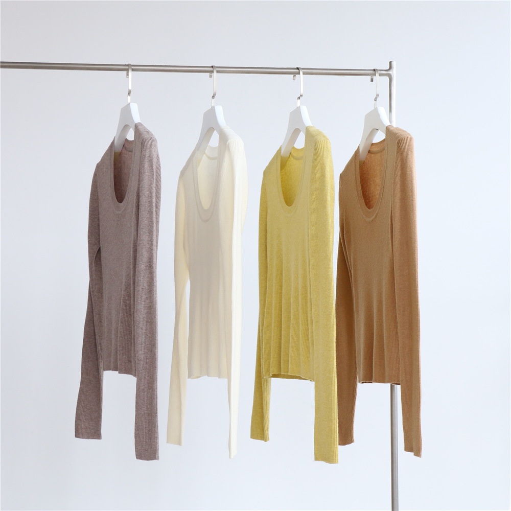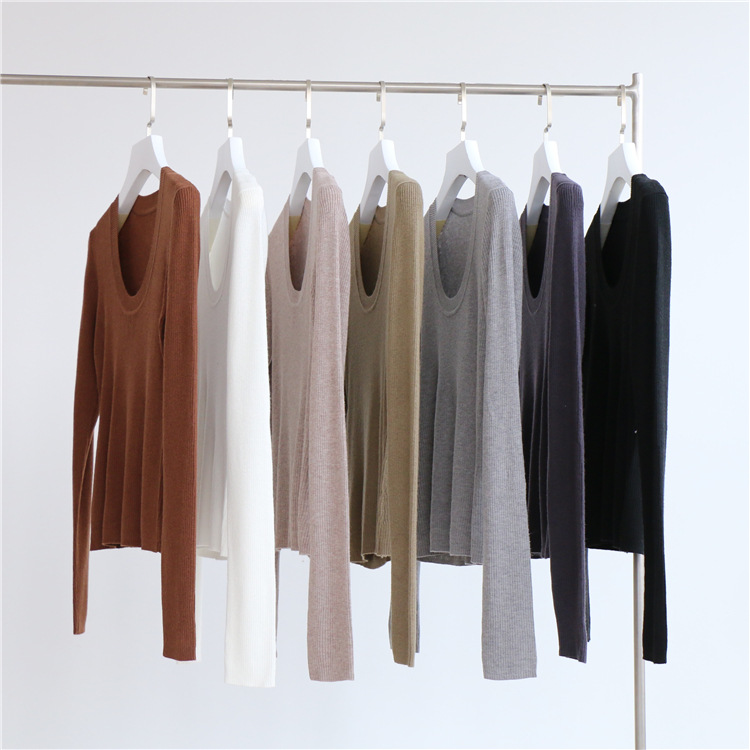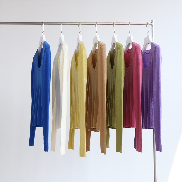 Главная страница > Разноцветная вязаная Базовая рубашка с 14 стежками из смесовой шерсти с U-образным вырезом, осенне-зимний свитер, внутренняя одежда, Женский Топ