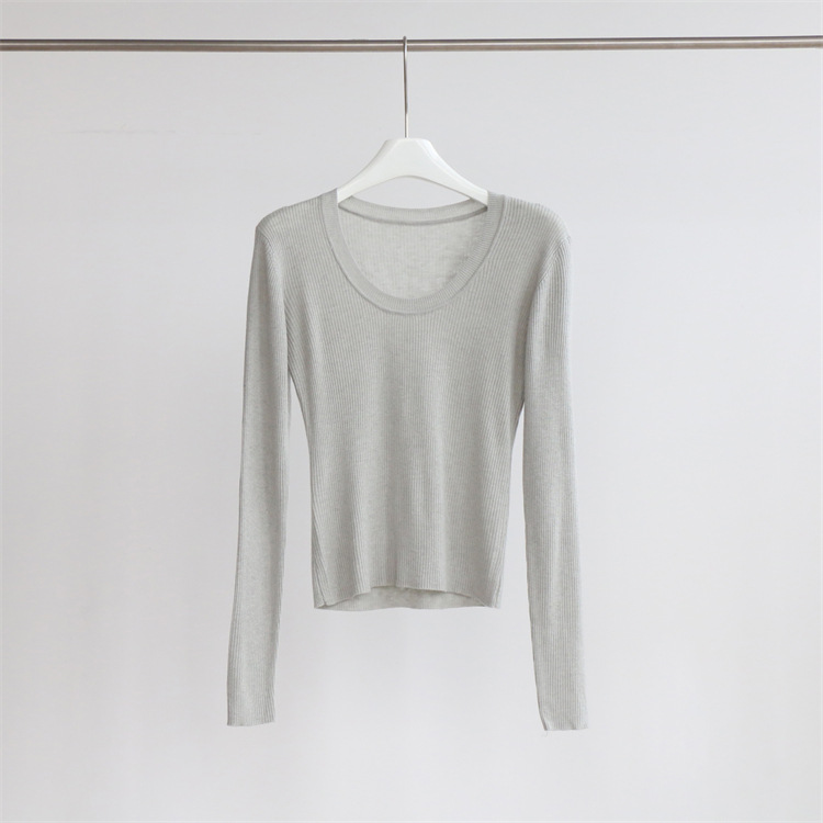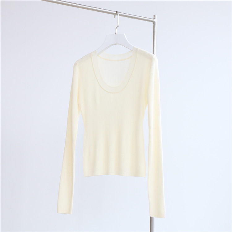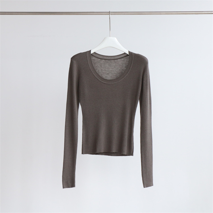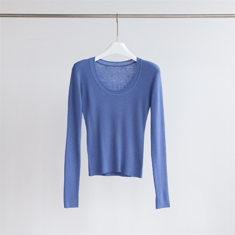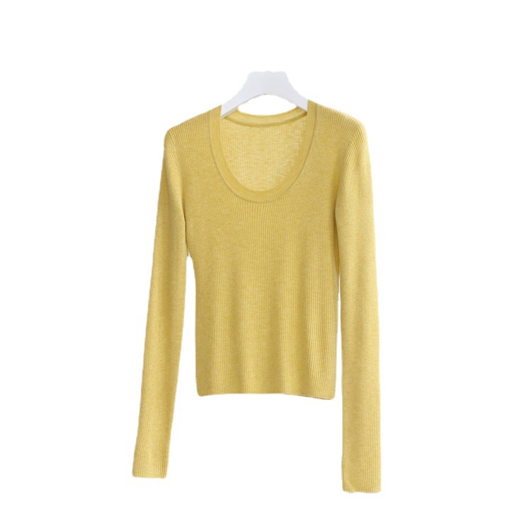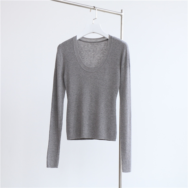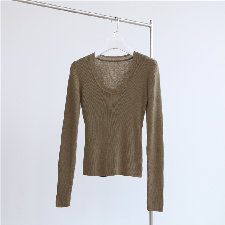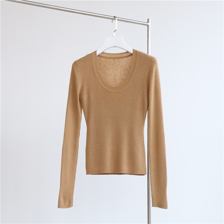 Главная страница > Разноцветная вязаная Базовая рубашка с 14 стежками из смесовой шерсти с U-образным вырезом, осенне-зимний свитер, внутренняя одежда, Женский Топ