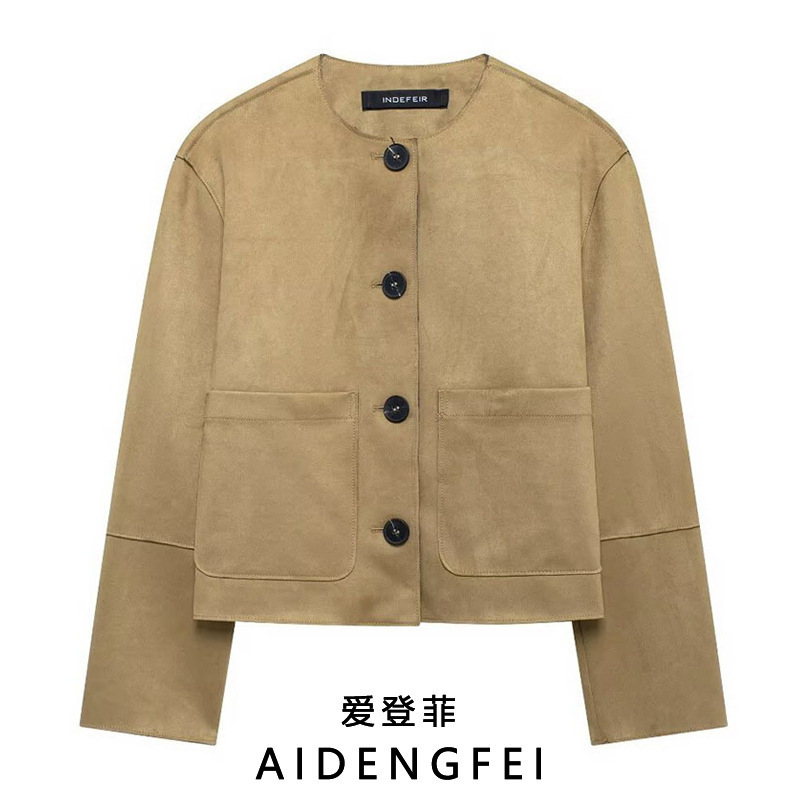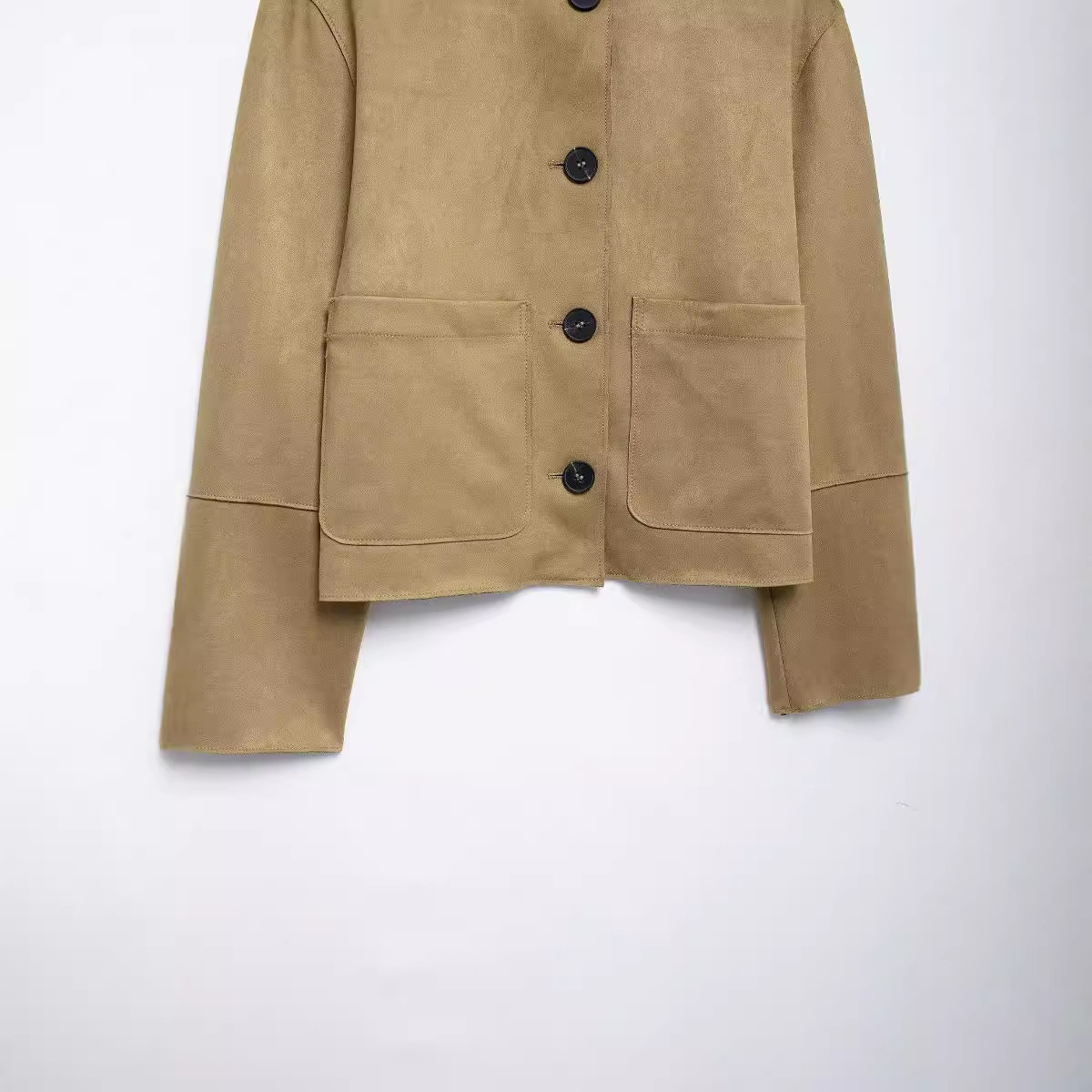 Европейский и американский стиль 2024 осень новый женский повседневный карманный замшевый эффект куртка 6318233