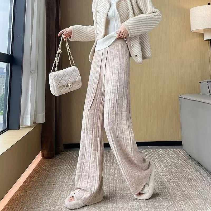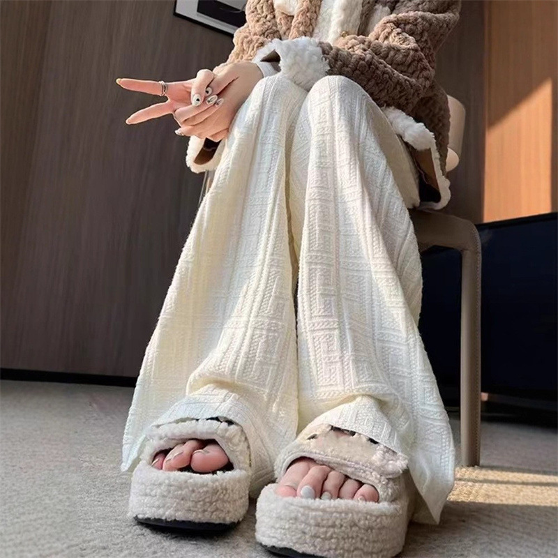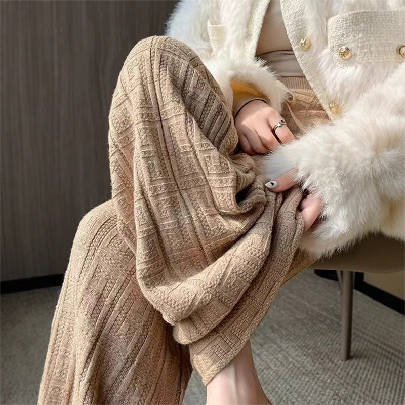 Главная страница > Трансграничные трикотажные жаккардовые мягкие повседневные брюки для женщин, осенне-зимние новые узкие свободные широкие брюки с высокой талией в ленивом стиле для женщин