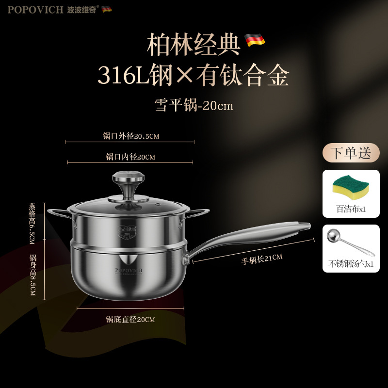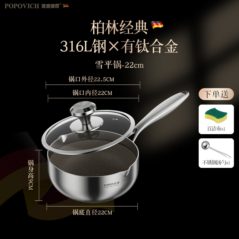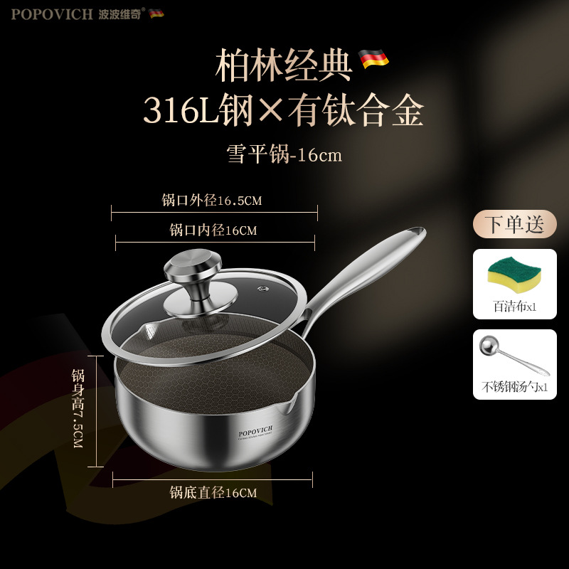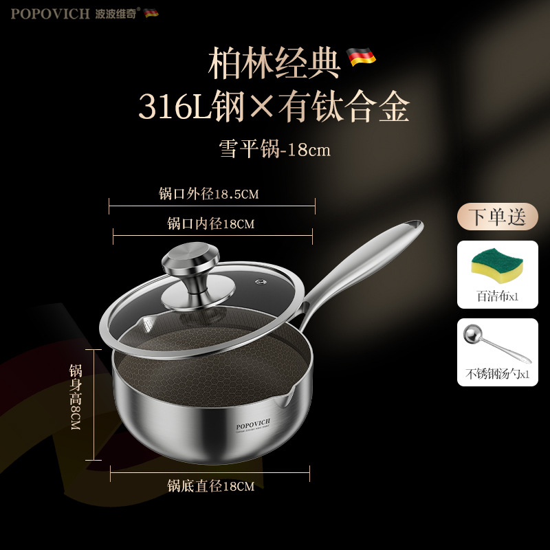 316 из нержавеющей стали небольшой молочный горшок бытовой титан сотовый антипригарный горшок без покрытия Индукционная плита кастрюля для супа кастрюля