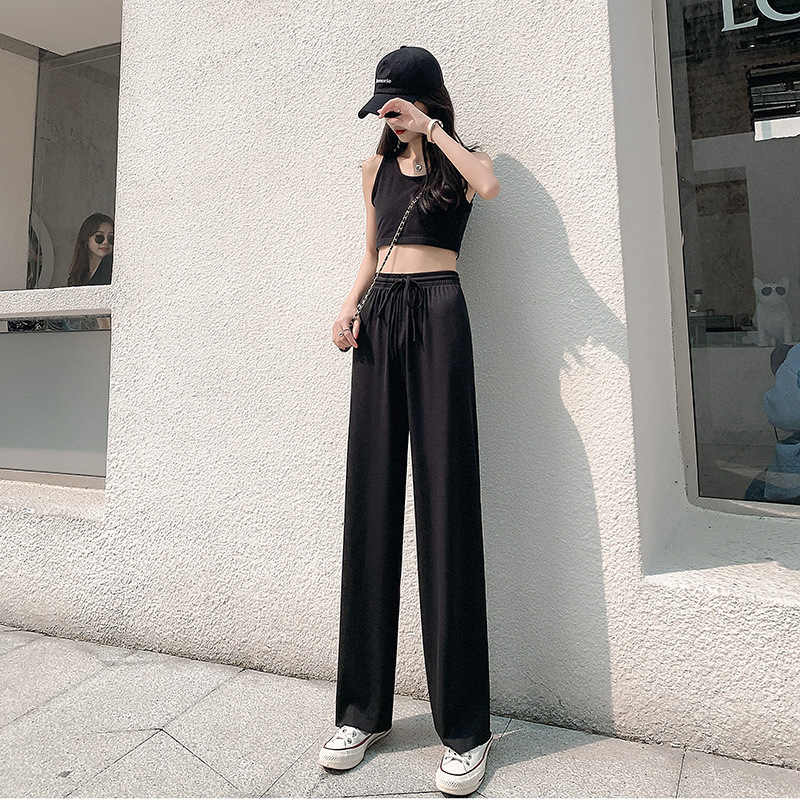 Главная страница > Ледяные Шелковые Широкие брюки женские летние новые повседневные брюки с высокой талией драпированные прямые брюки свободные брюки для похудения женские