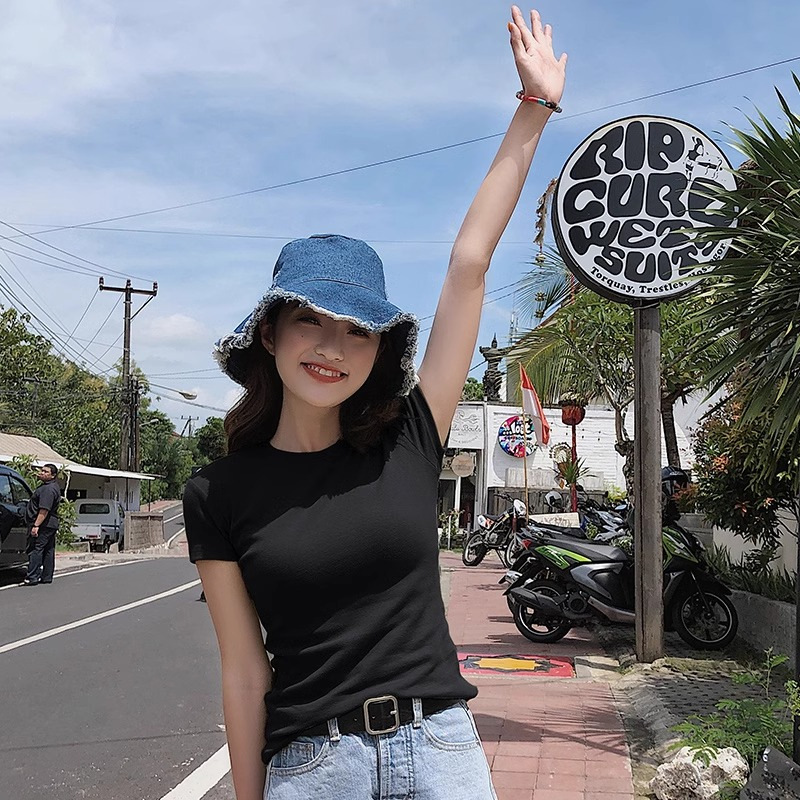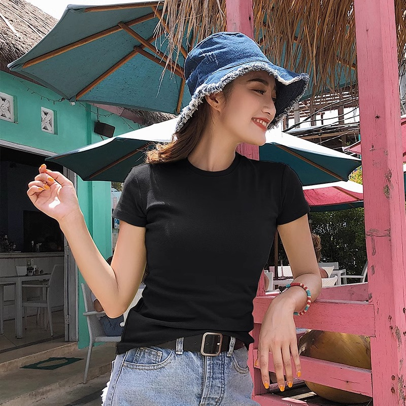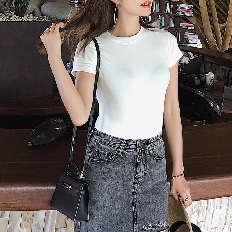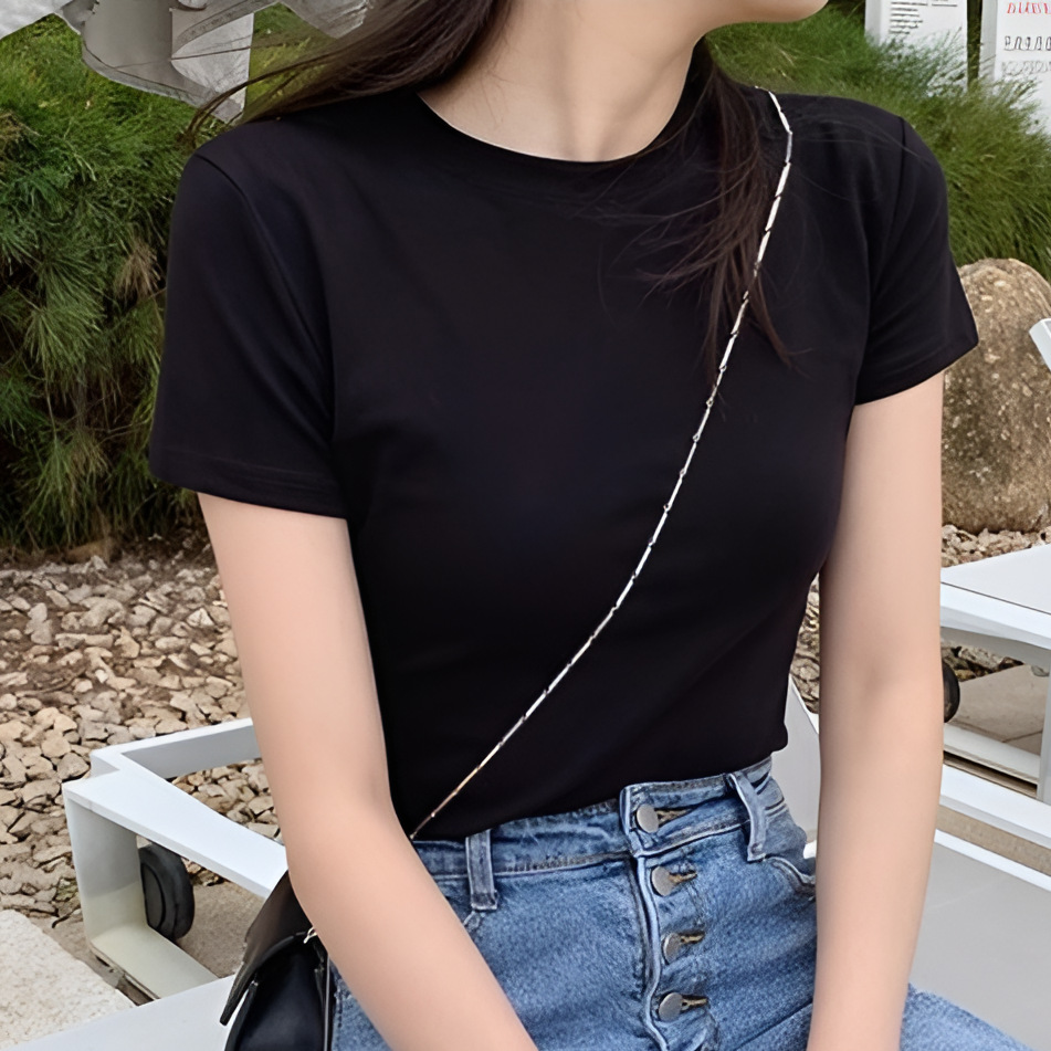 Главная страница > Белая футболка с короткими рукавами на плече с круглым вырезом на плече 2024 летом новая тонкая тонкая внутренняя рубашка нишевого топ