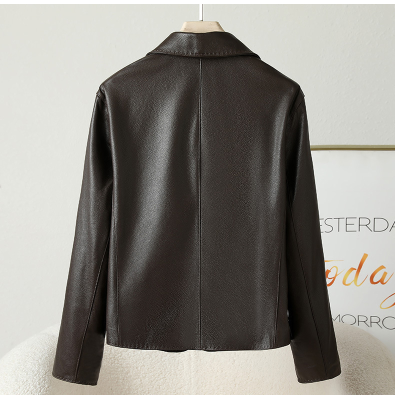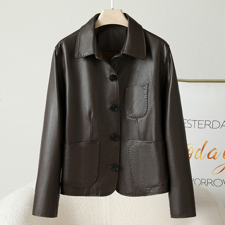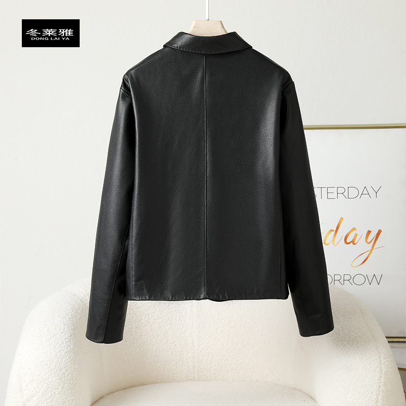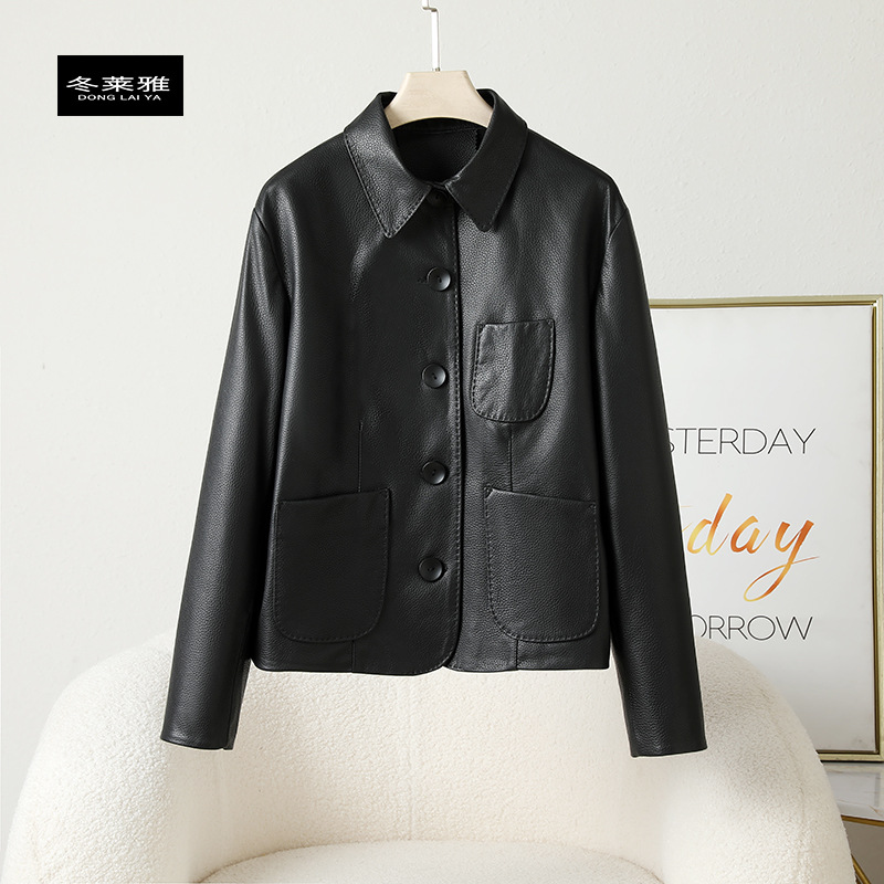 Главная страница > Haining весна и осень новая кожаная кожаная одежда женская козья кожа лацканный воротник высокого уровня корейская версия тонкая и тонкая женская кожаная куртка