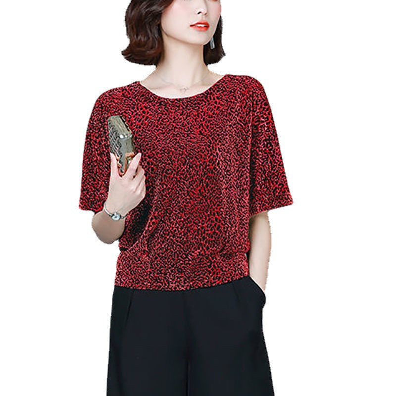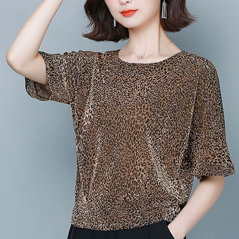 Главная страница > Яркая футболка женская рубашка с короткими рукавами летом 2025 новый большой размер свободный живот яркий шелк нижний рубашка ins леопардовый принт