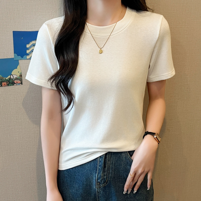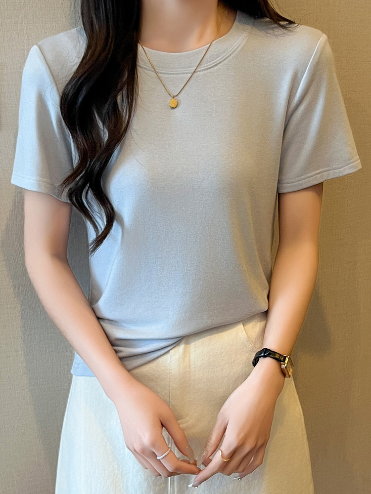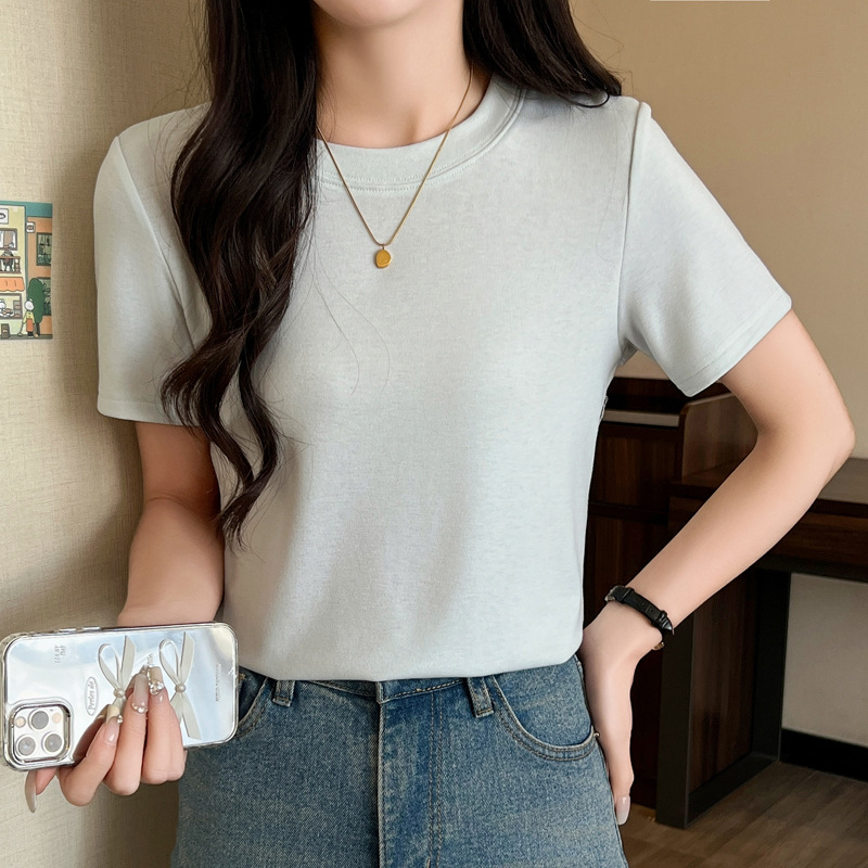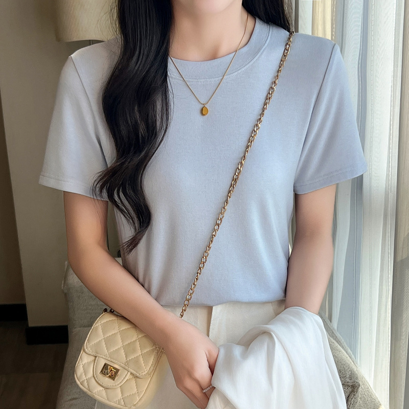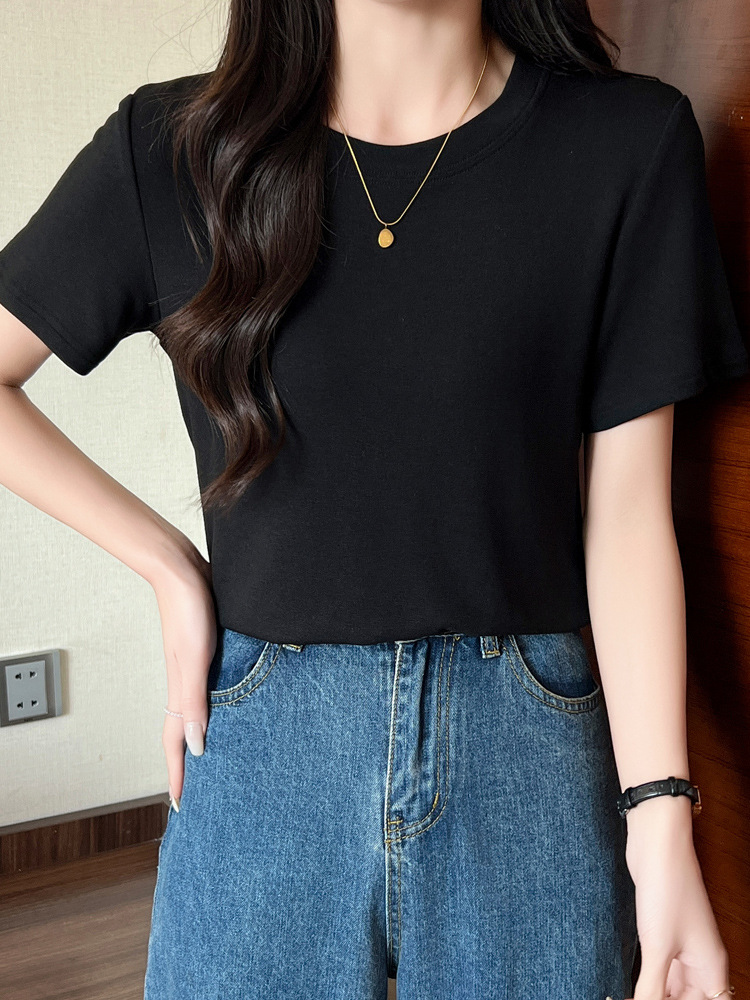 Главная страница > Летняя футболка женская с короткими рукавами новая верхняя часть плеча тонкая, простая симпатичная и удобная базовая рубашка с круглым вырезом оптом