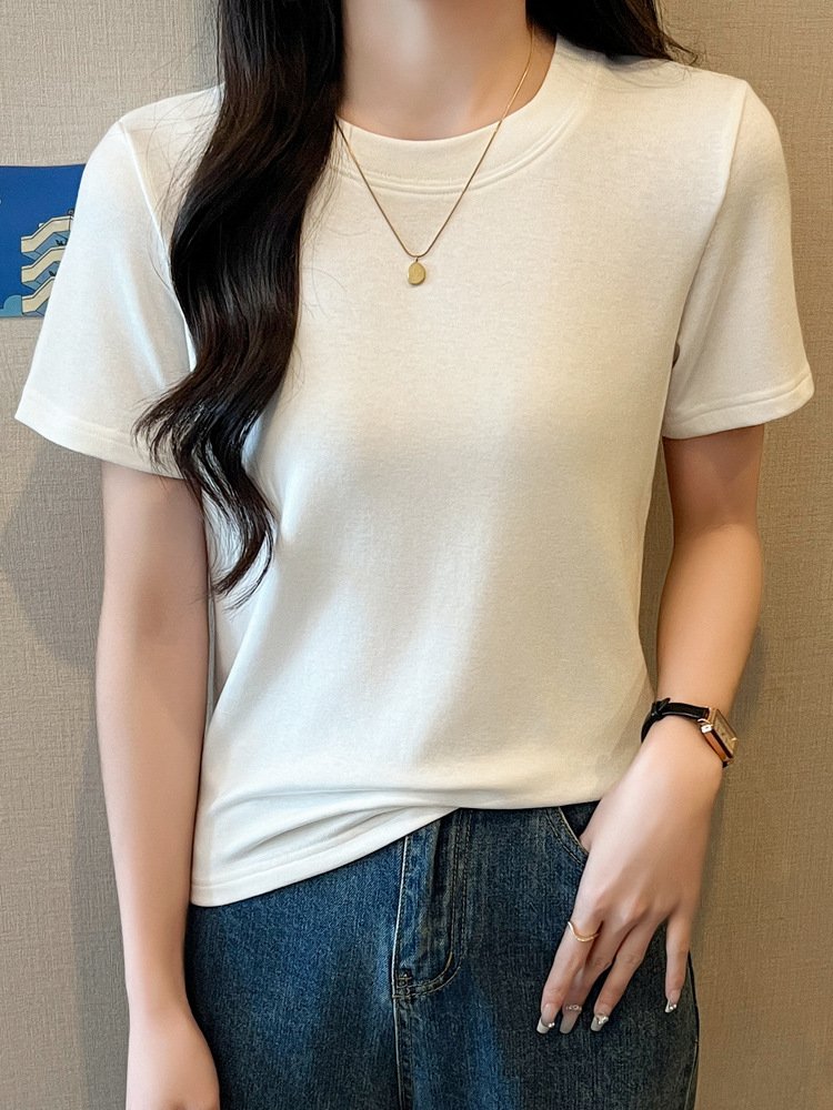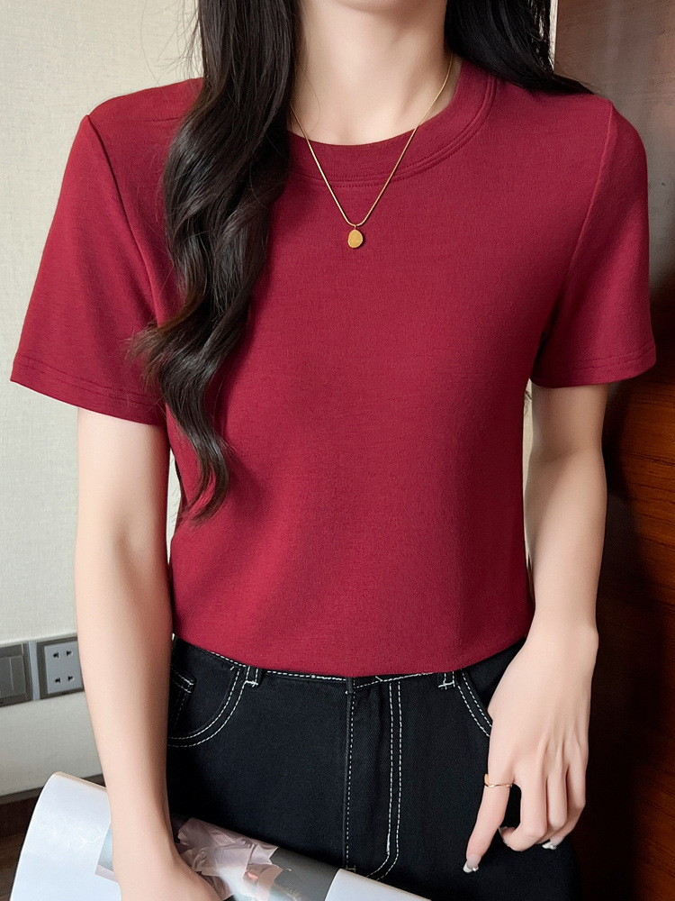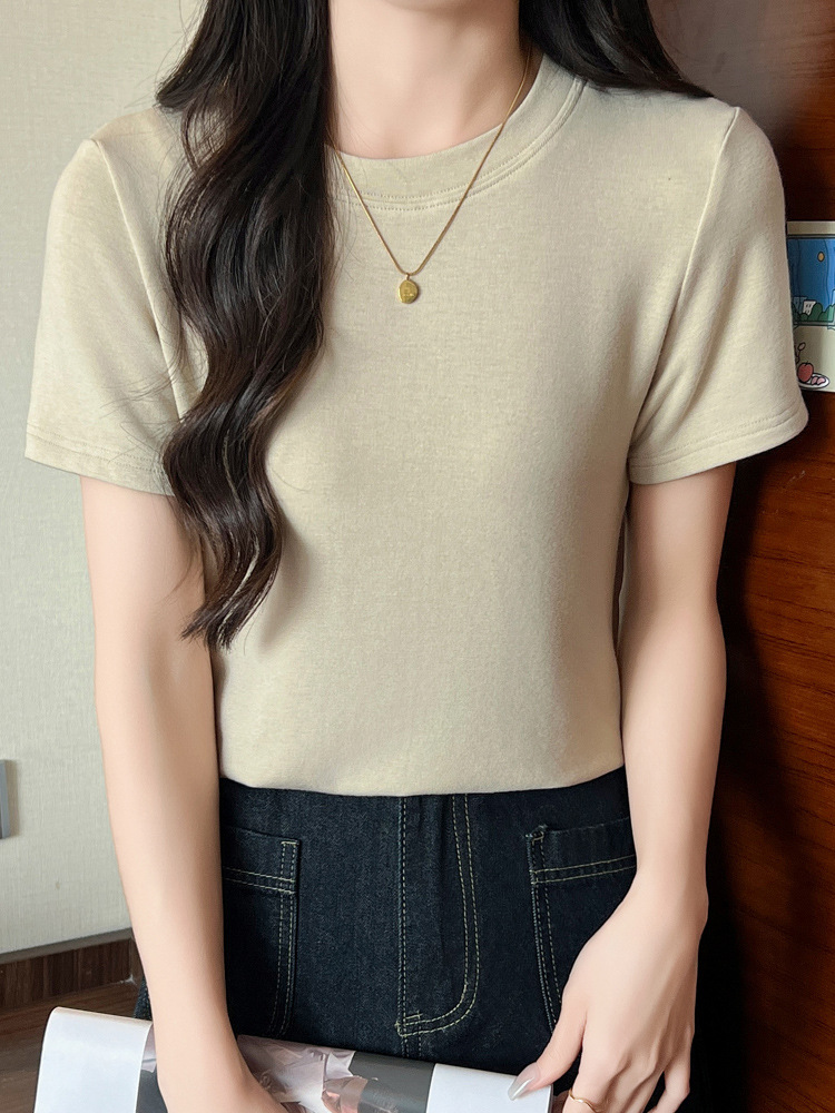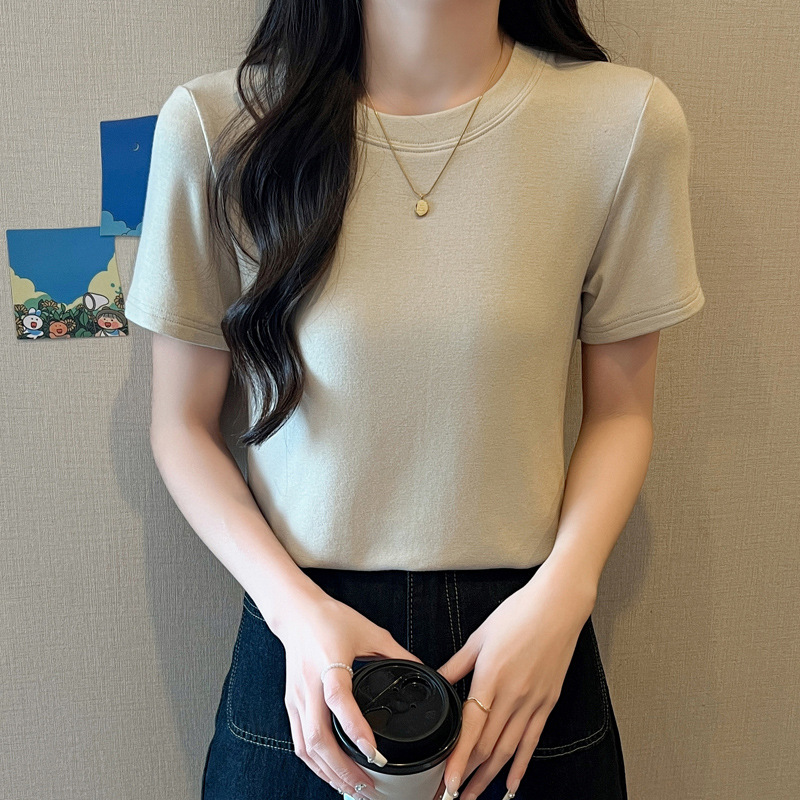 Главная страница > Летняя футболка женская с короткими рукавами новая верхняя часть плеча тонкая, простая симпатичная и удобная базовая рубашка с круглым вырезом оптом