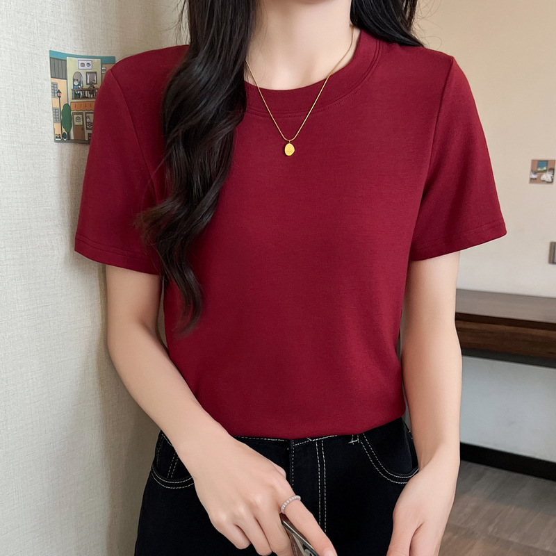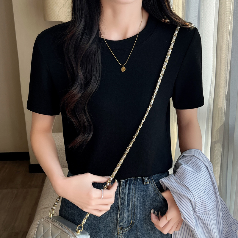 Летняя футболка женская с короткими рукавами новая верхняя часть плеча тонкая, простая симпатичная и удобная базовая рубашка с круглым вырезом оптом