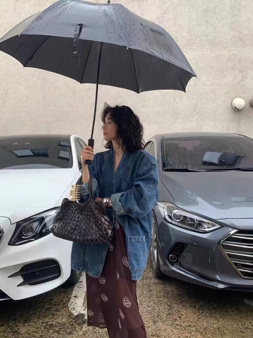 Главная страница > Официальная иллюстрация 2024 Ранняя осень новый ретро свободный дизайн чувство двубортное плечо джинсовая куртка блузка