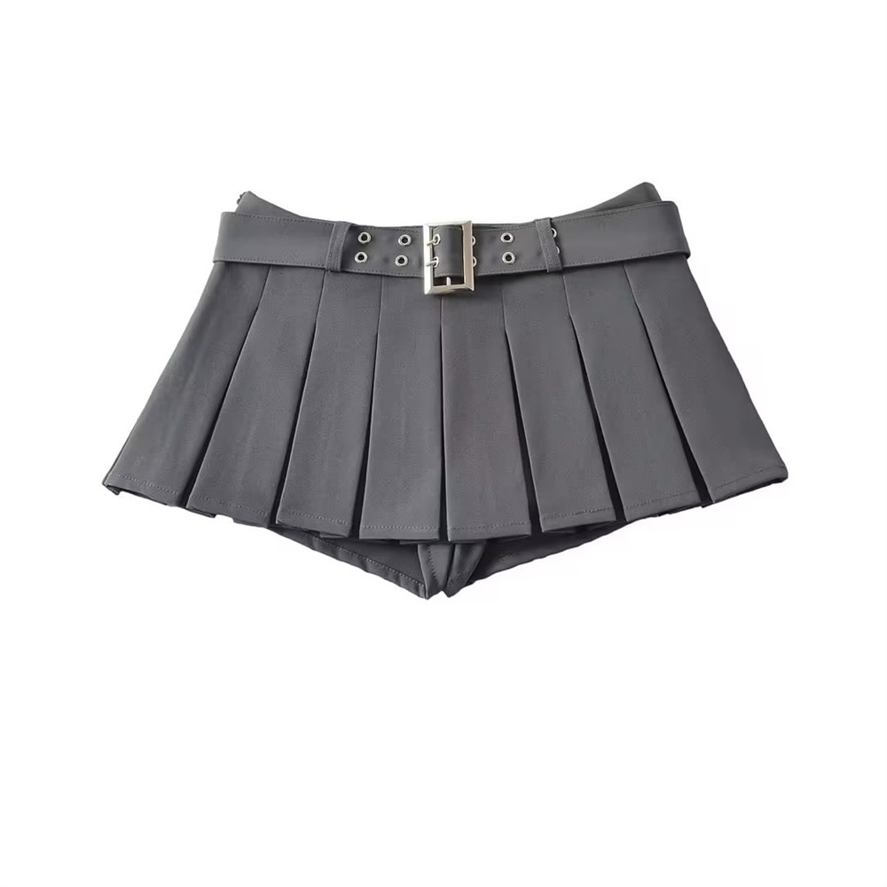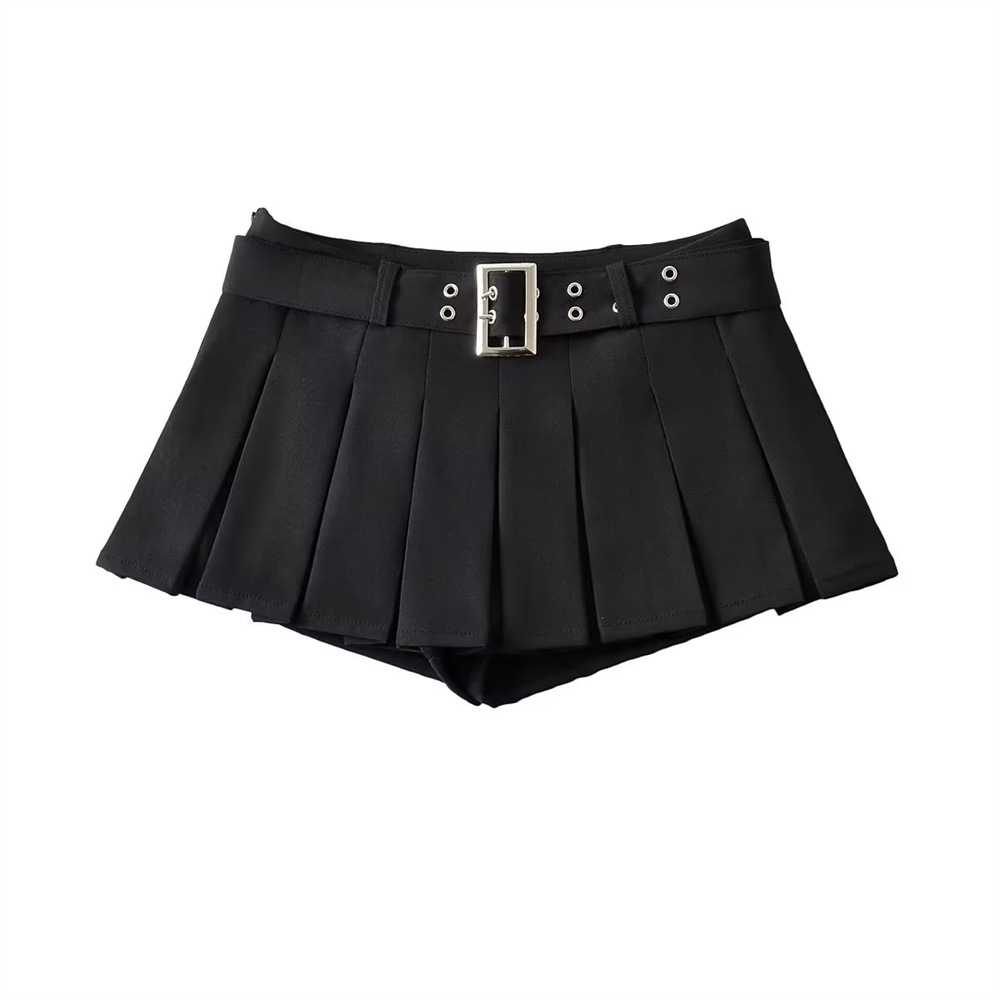 YPFF Модная Женская Сексуальная короткая юбка с низкой посадкой и пупком, трусы с поясом, юбка с защитой от сумерек, плиссированная юбка
