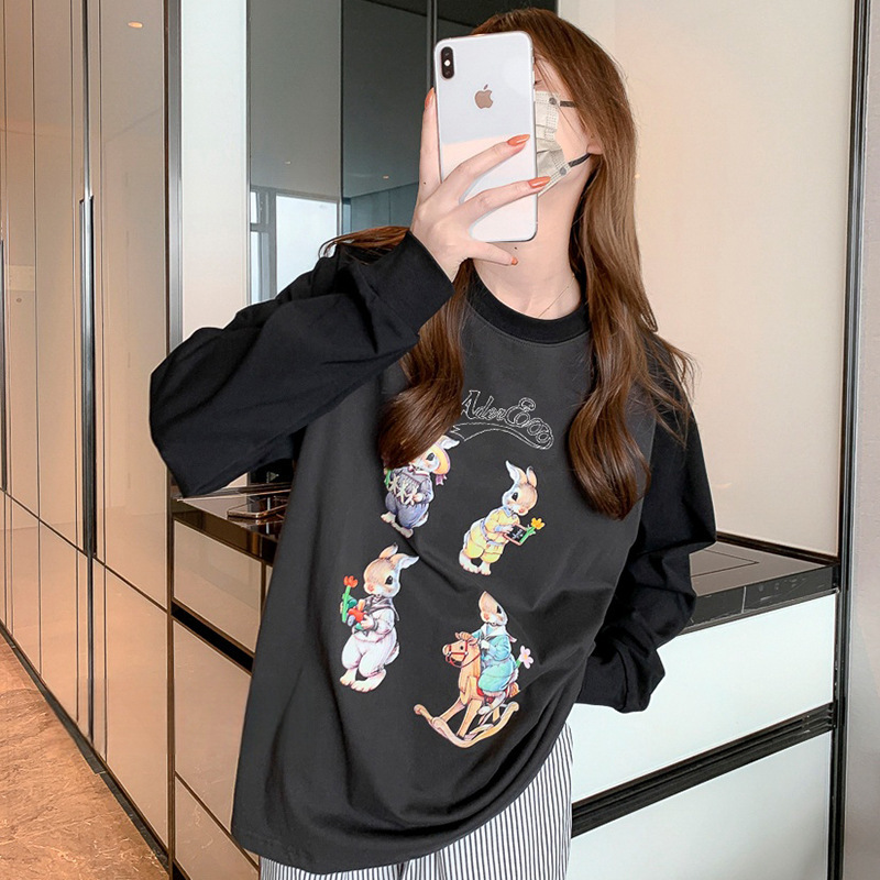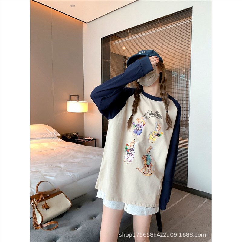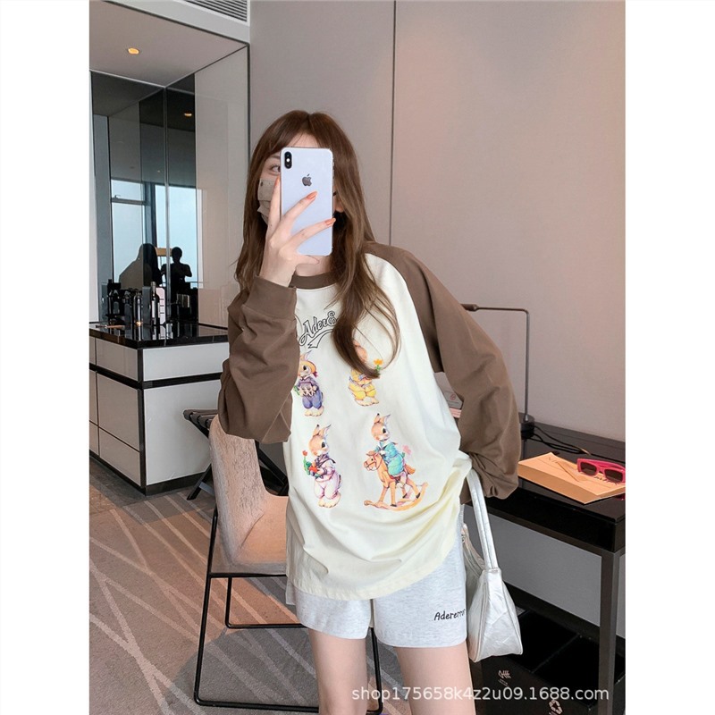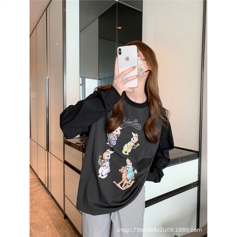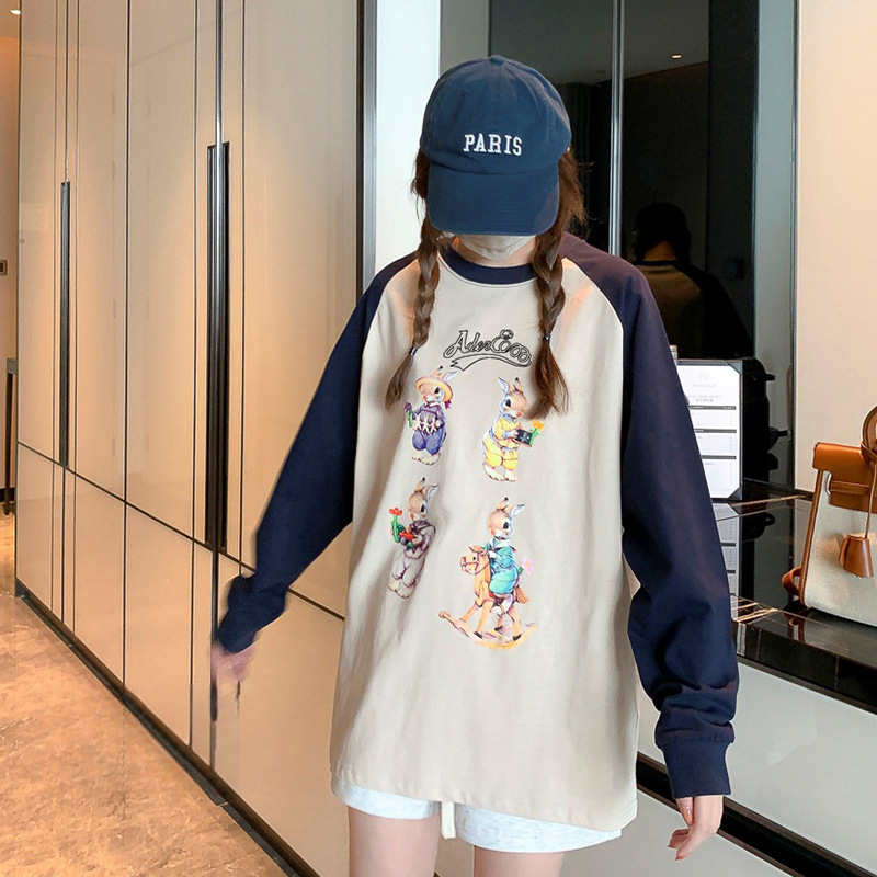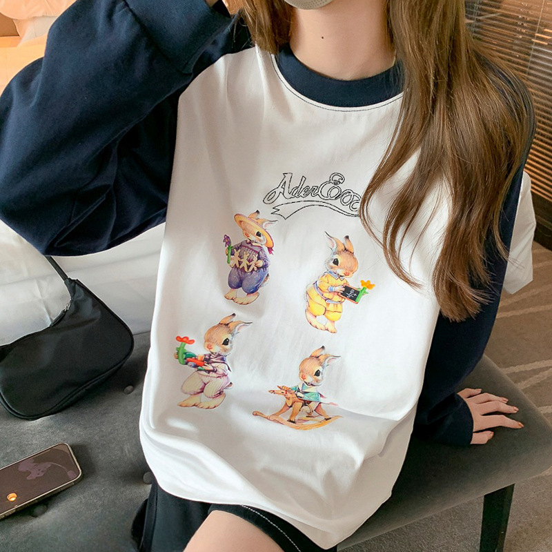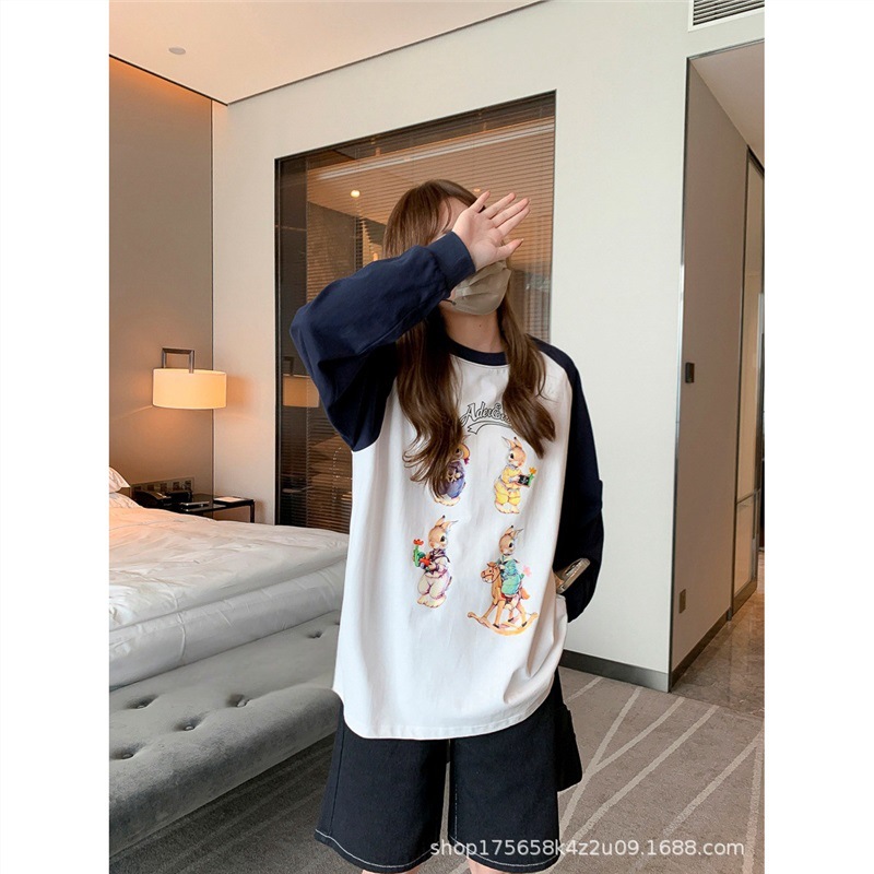 Главная страница > Футболка с длинными рукавами Ader, женская нижняя рубашка, ленивый стиль, повседневный свободный топ из чистого хлопка для пар, топ реглан