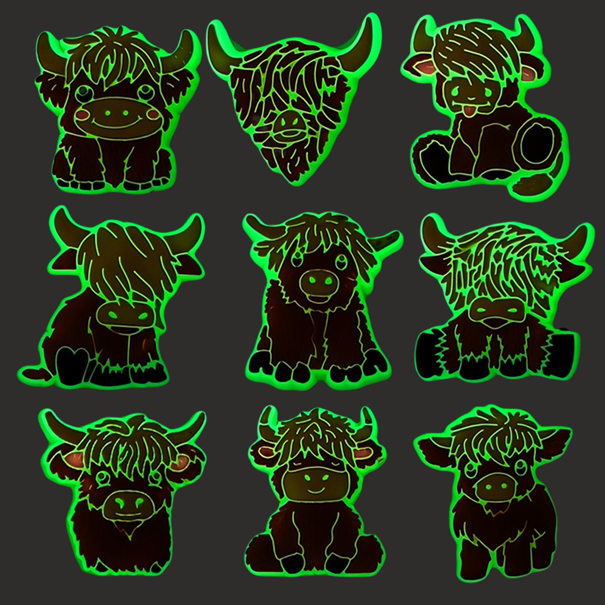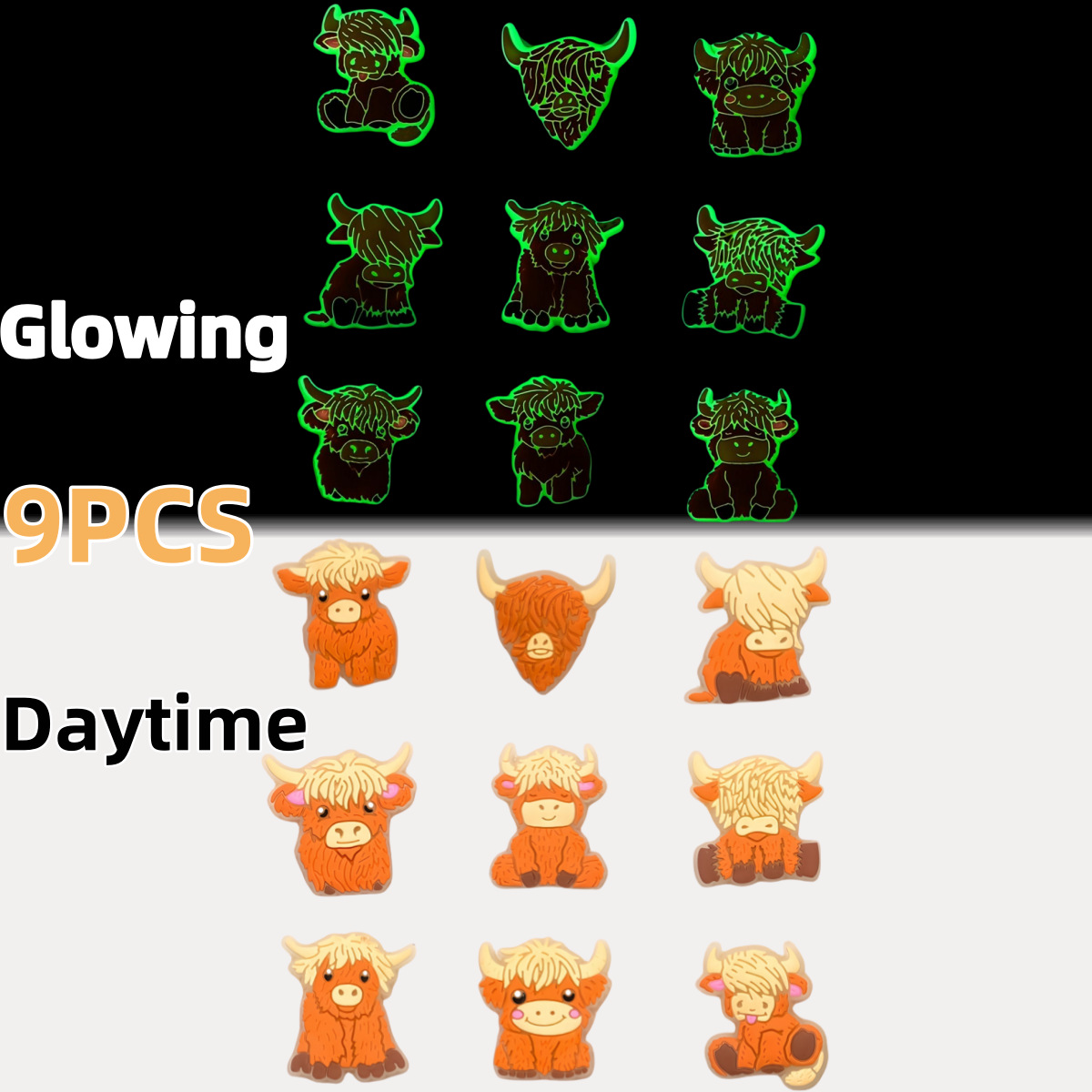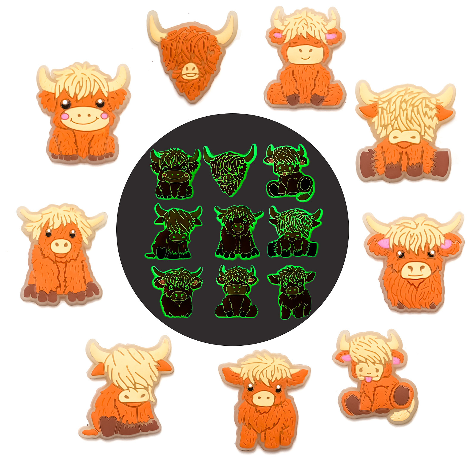 Светящийся шотландский горный скот серии пещерные аксессуары для обуви ПВХ мягкий клей для обуви DIY цветы для обуви застежки декоративные аксессуары для обуви