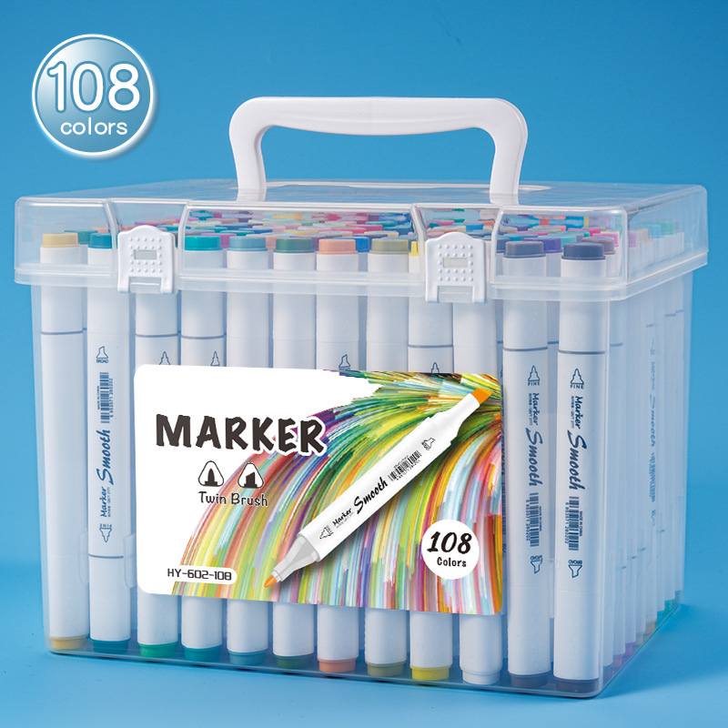 Подарочная коробка двухголовая жирная треугольная палка маркерная ручка 108 цветов