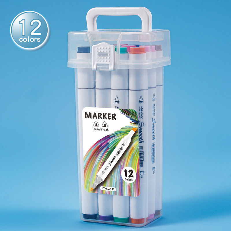 Подарочная коробка двухголовая жирная треугольная палка маркерная ручка 12 цветов