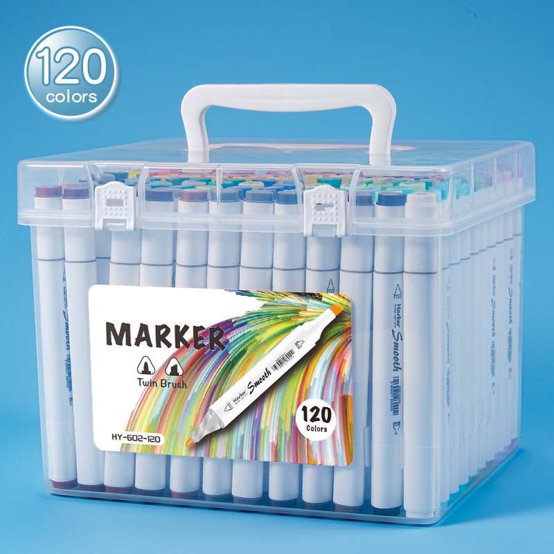 Подарочная коробка двухголовая жирная треугольная палка маркерная ручка 120 цветов