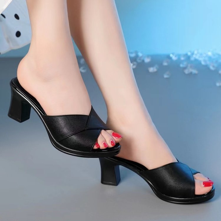 Главная страница > Холодные тапочки на высоком каблуке толстые каблуки 2025 новая нескользящая обувь на мягкой подошве мамы рыбий рот летние домашние спортивные тапочки