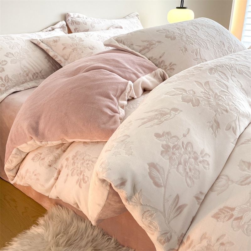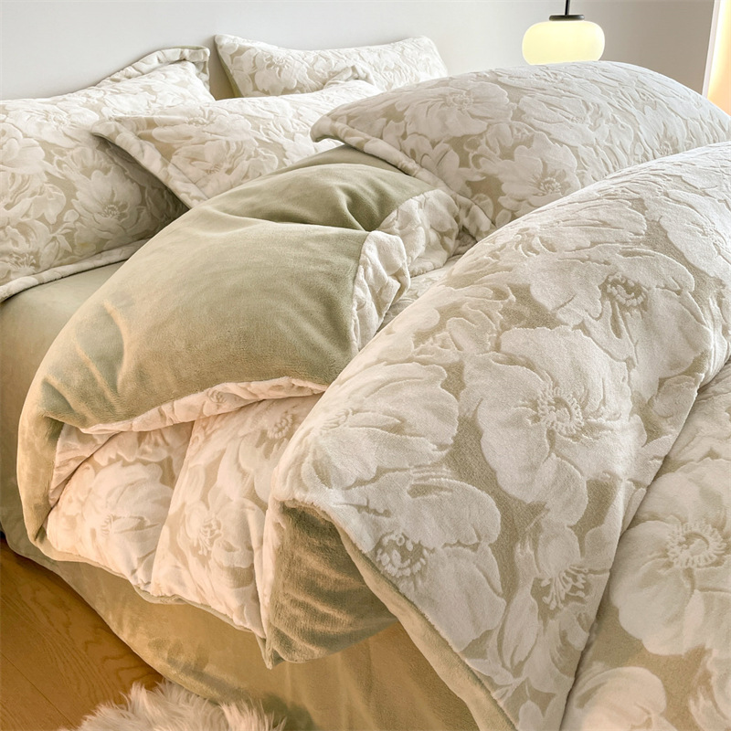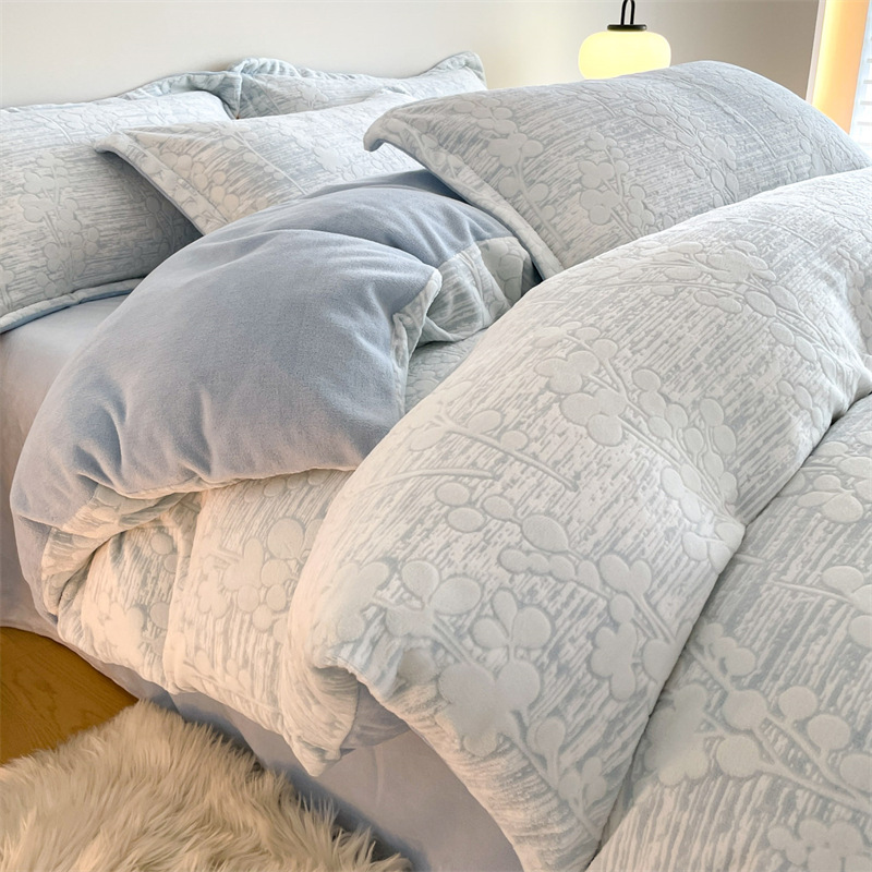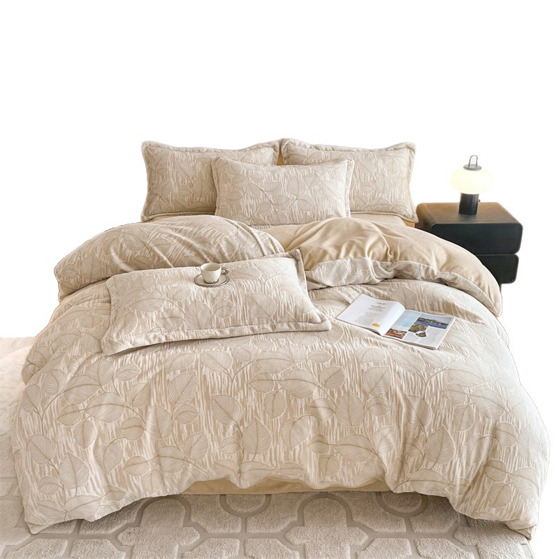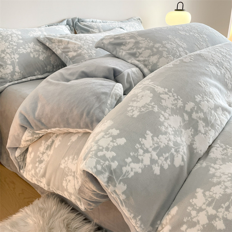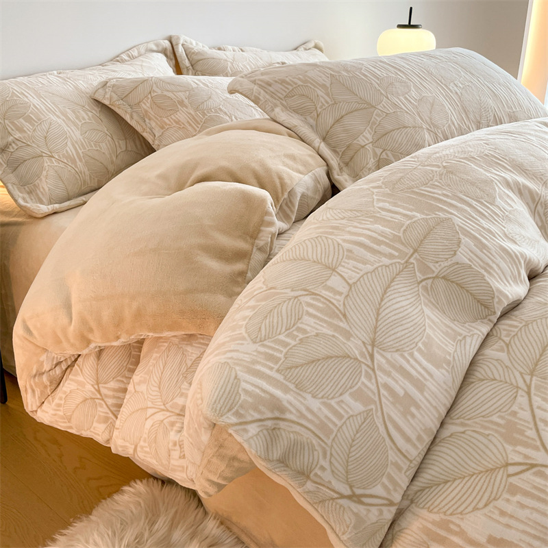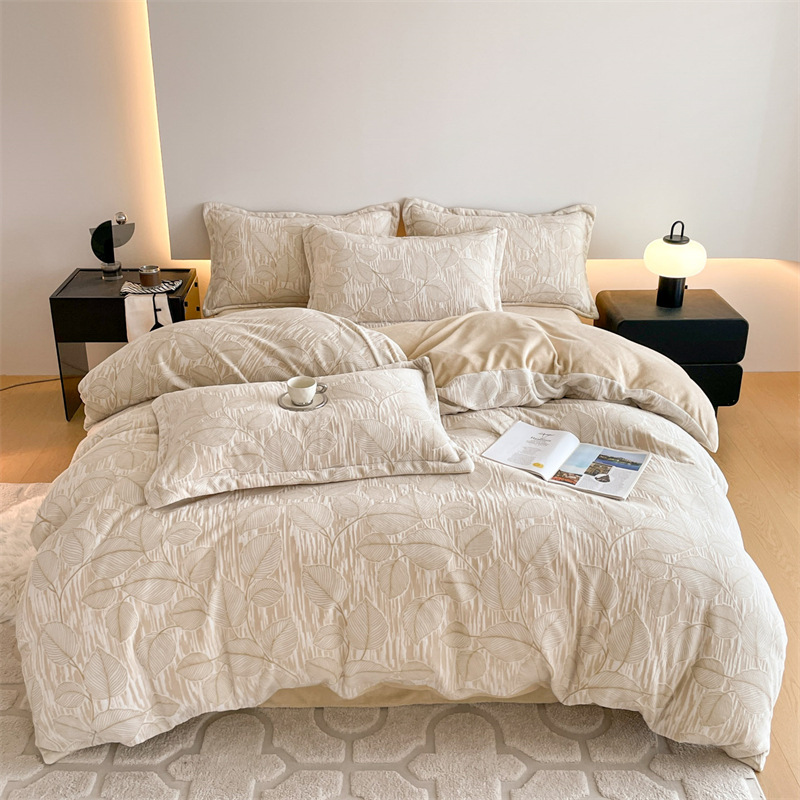 Резной молочный бархат Комплект из четырех предметов Зимний утолщенный теплый коралловый бархат Комплект из трех предметов Однотонная простыня Пододеяльник Постельное белье