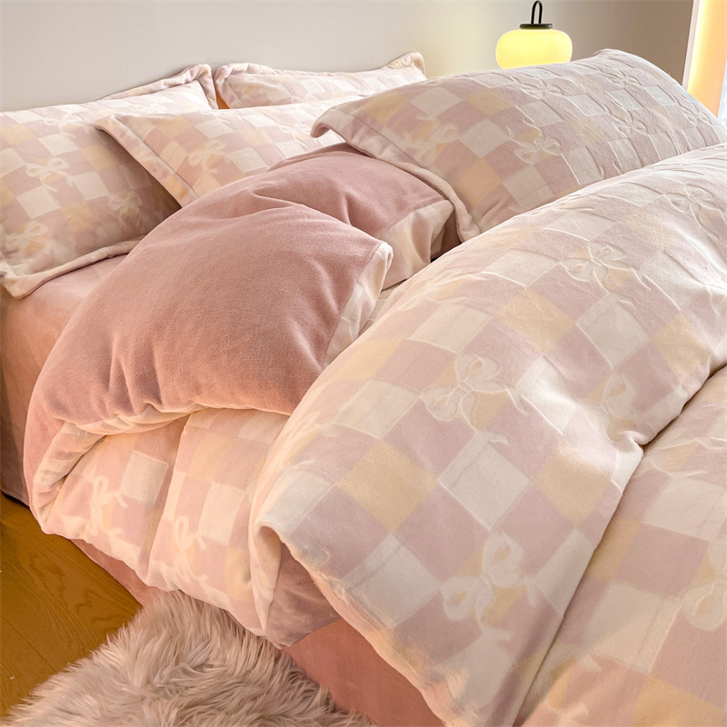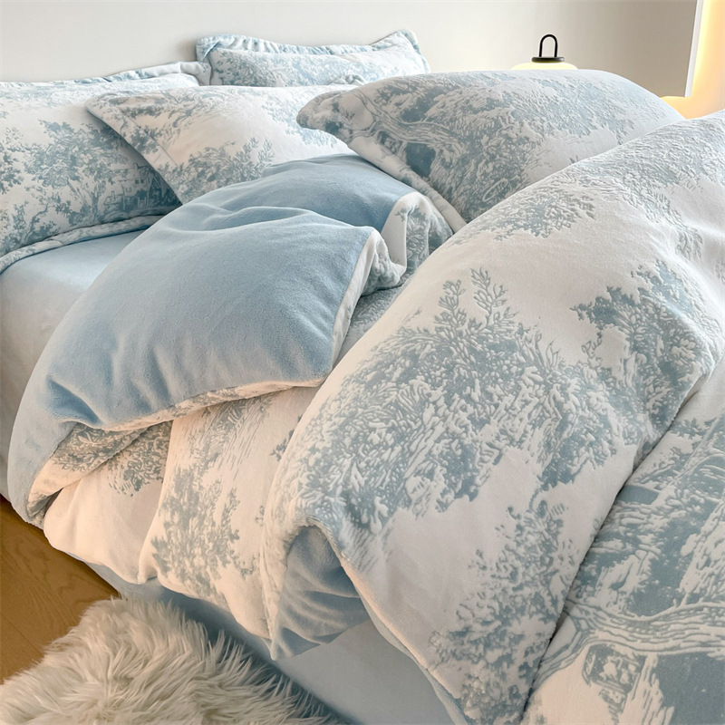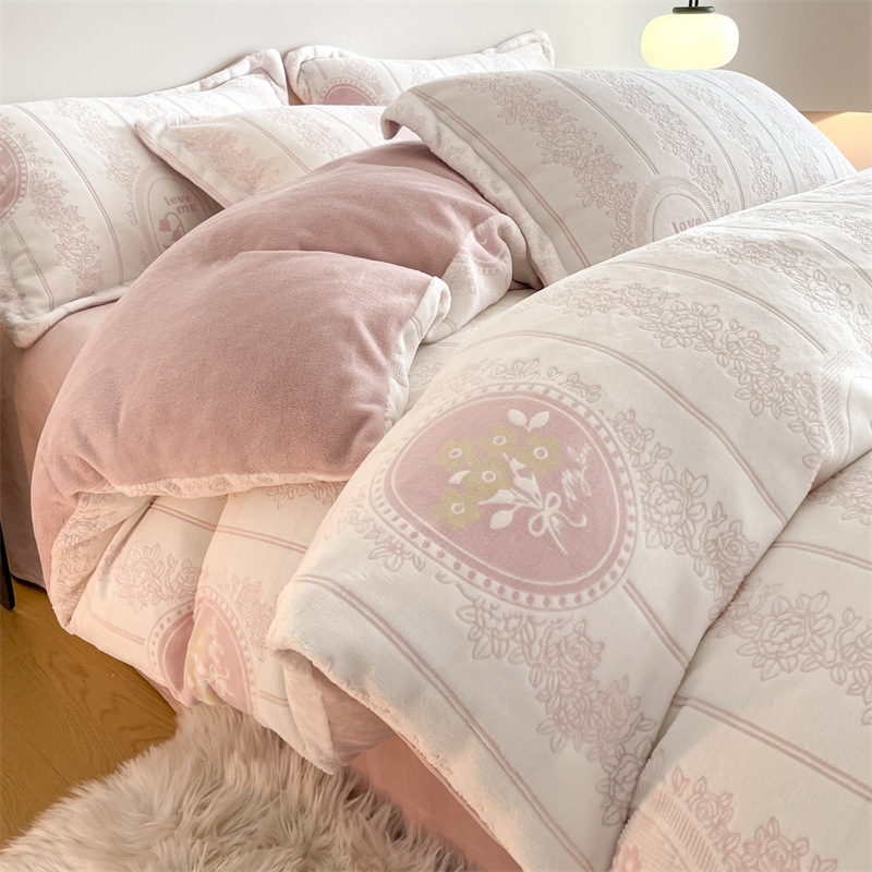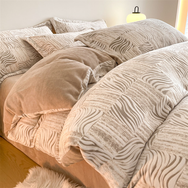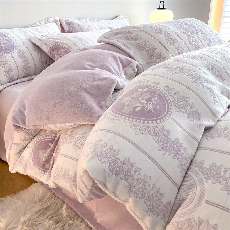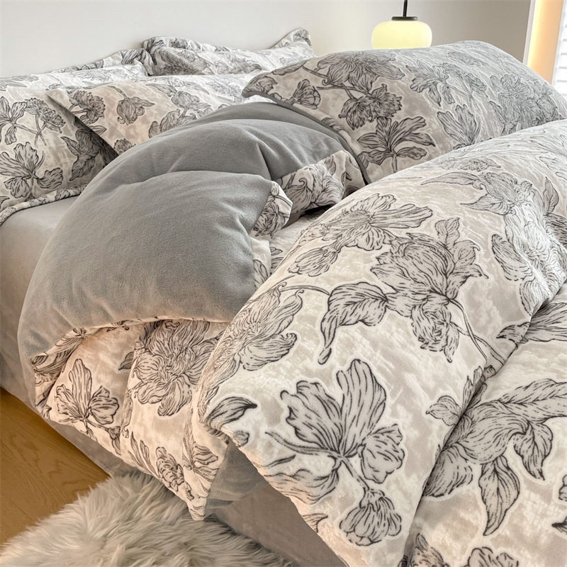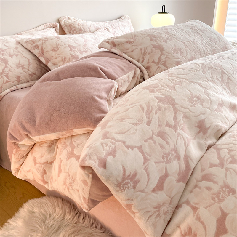 Резной молочный бархат Комплект из четырех предметов Зимний утолщенный теплый коралловый бархат Комплект из трех предметов Однотонная простыня Пододеяльник Постельное белье