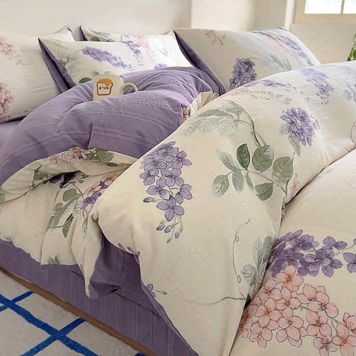 Жаккардовая облачная пряжа класса А, хлопковая кровать, простыни из четырех предметов, пододеяльник, простыни для студенческого общежития, комплект прямой трансляции, производитель горячих моделей