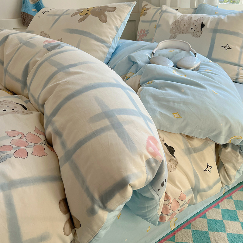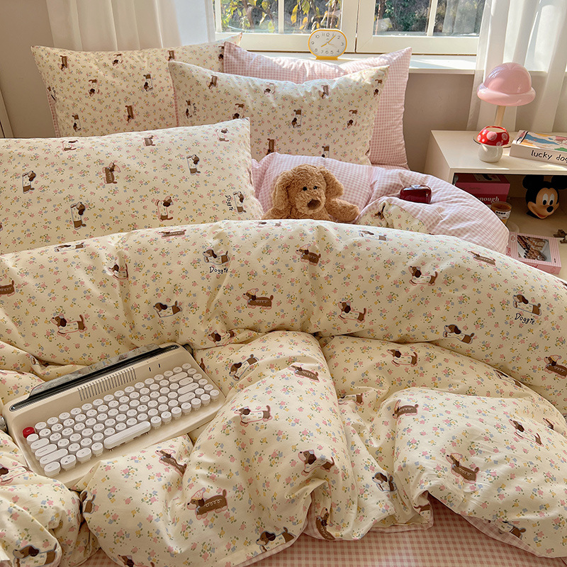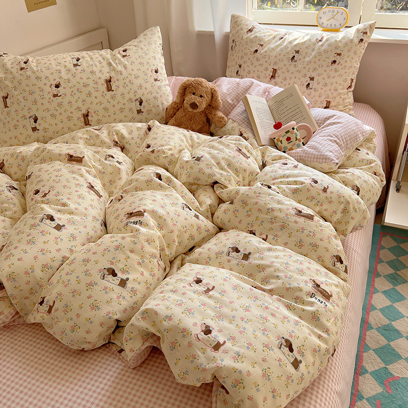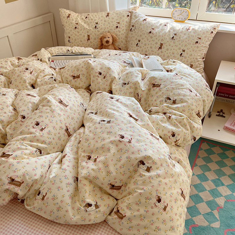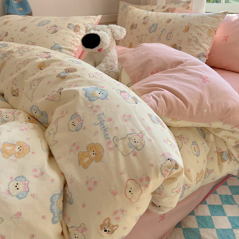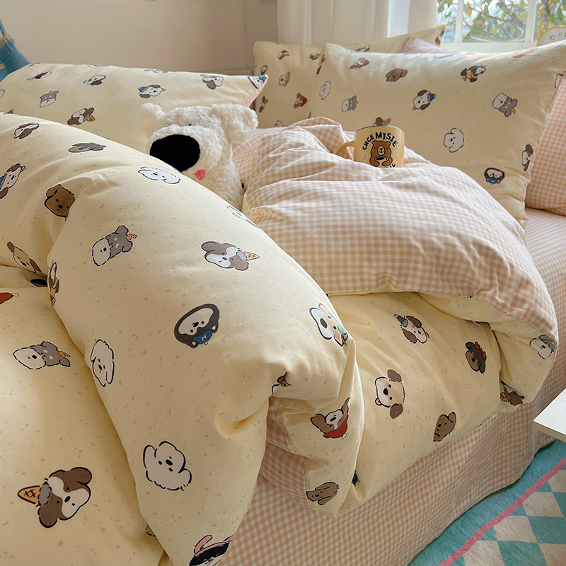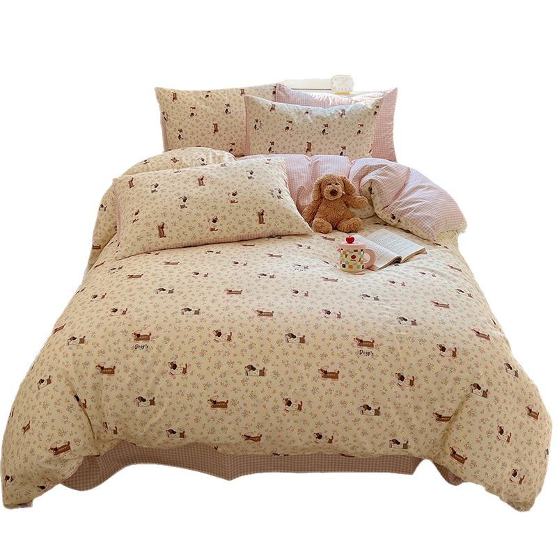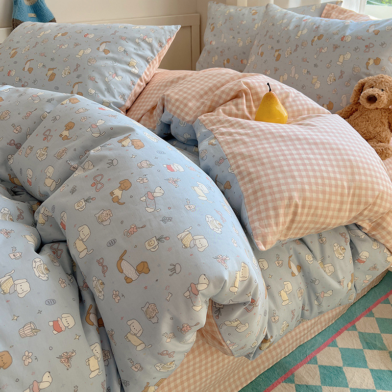 Главная страница > INS Мультяшный хлопок набор из четырех частей Симпатичная собака постельное белье с принтом одеяло простыни Студенческое общежитие набор из трех частей