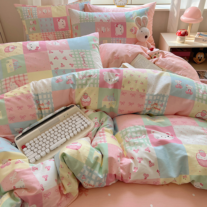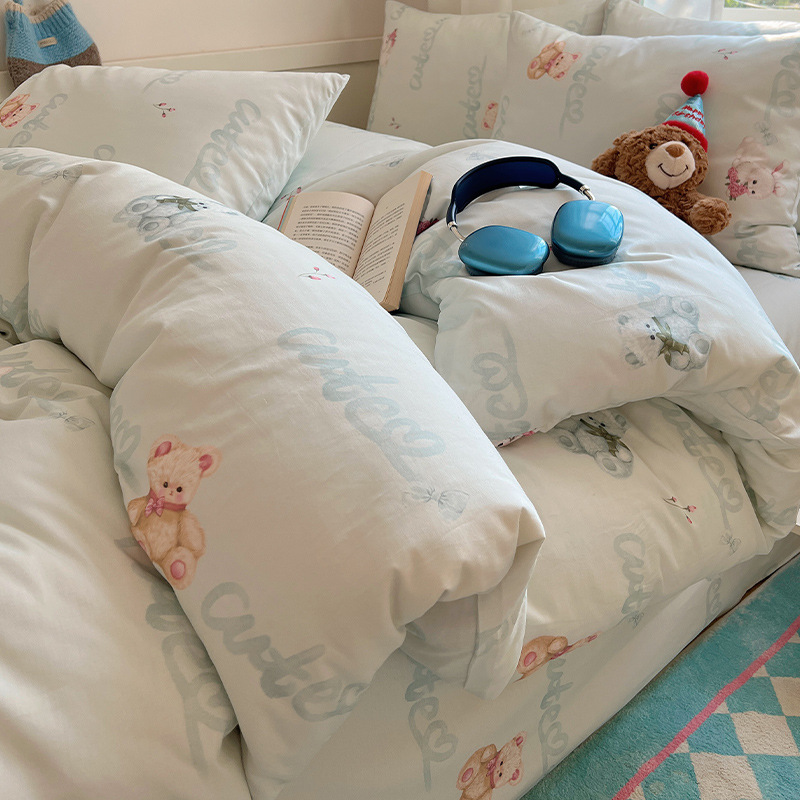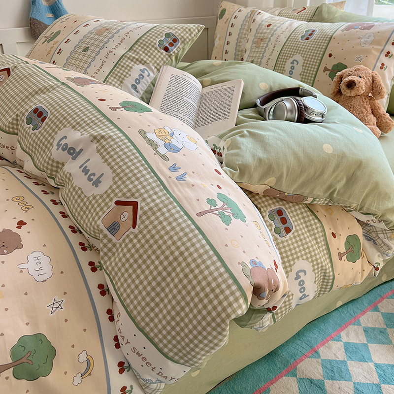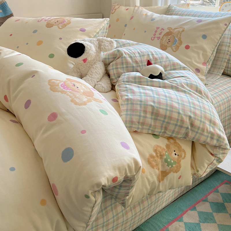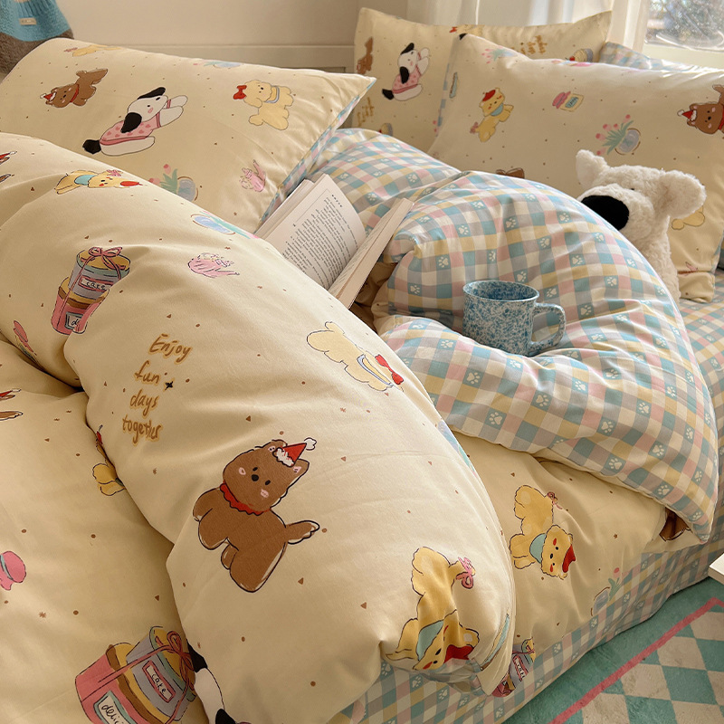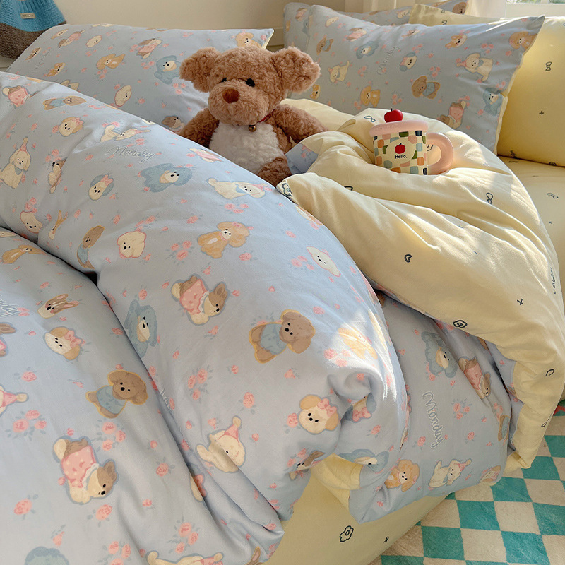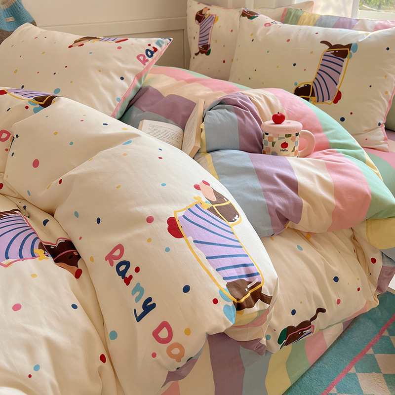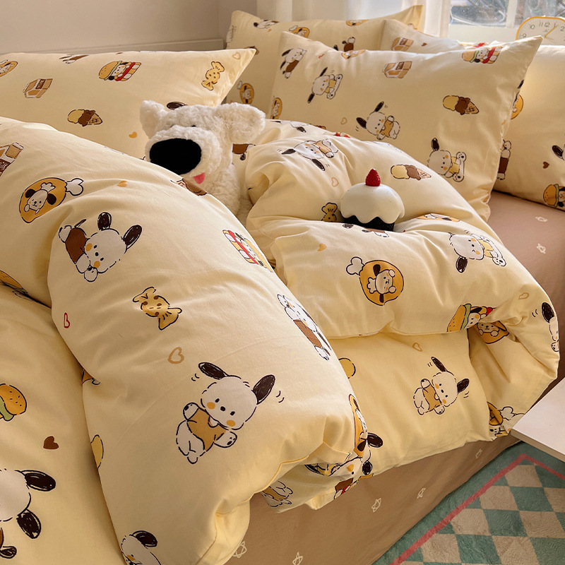 Главная страница > INS Мультяшный хлопок набор из четырех частей Симпатичная собака постельное белье с принтом одеяло простыни Студенческое общежитие набор из трех частей