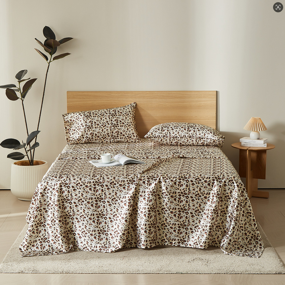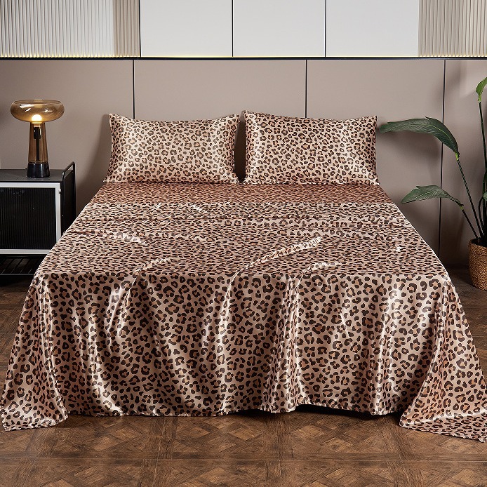 Главная страница > Комплект постельного белья из искусственного шелка с цифровой печатью (пододеяльник, простыня на резинке, наволочки), имитация леопардового принта, для трансграничной торговли на Amazon