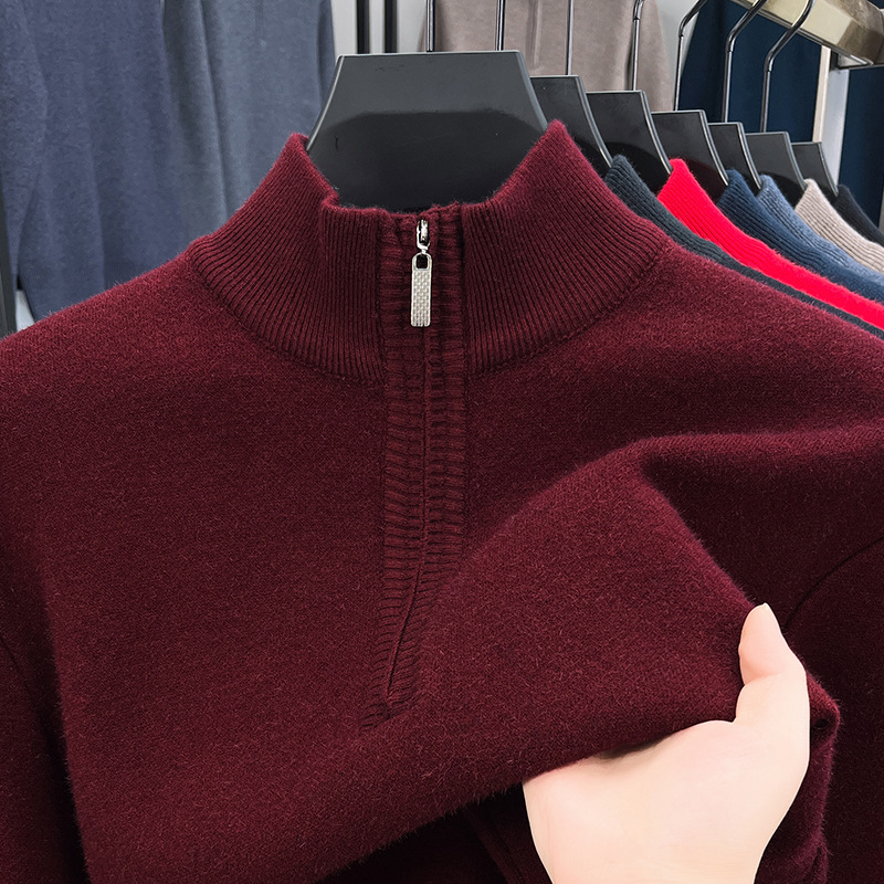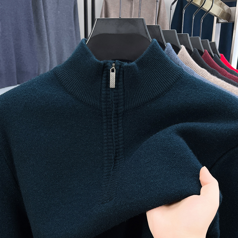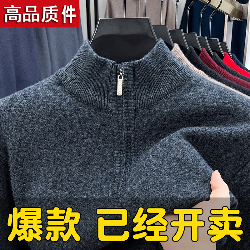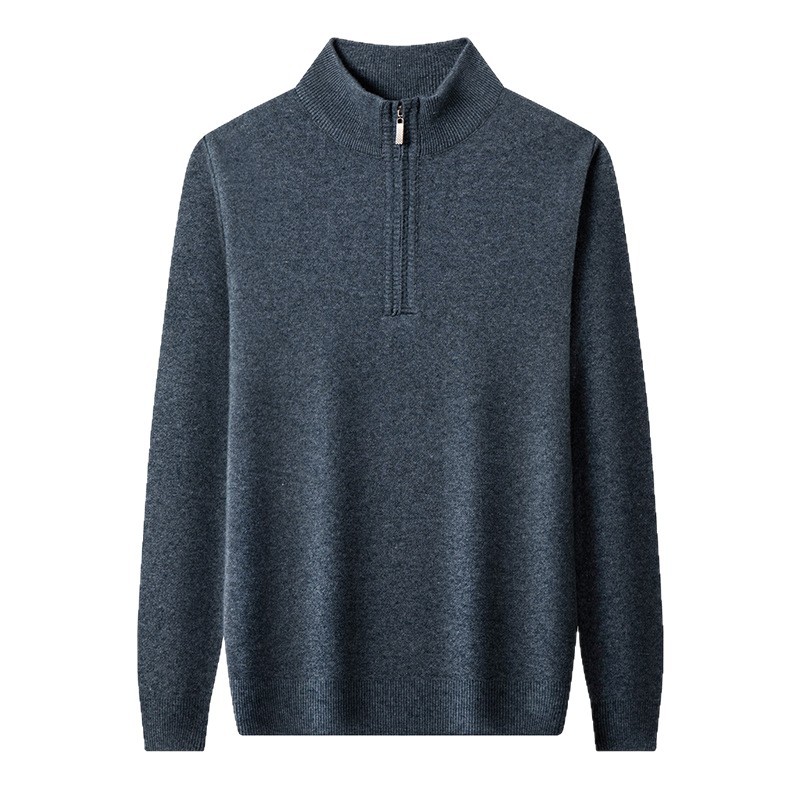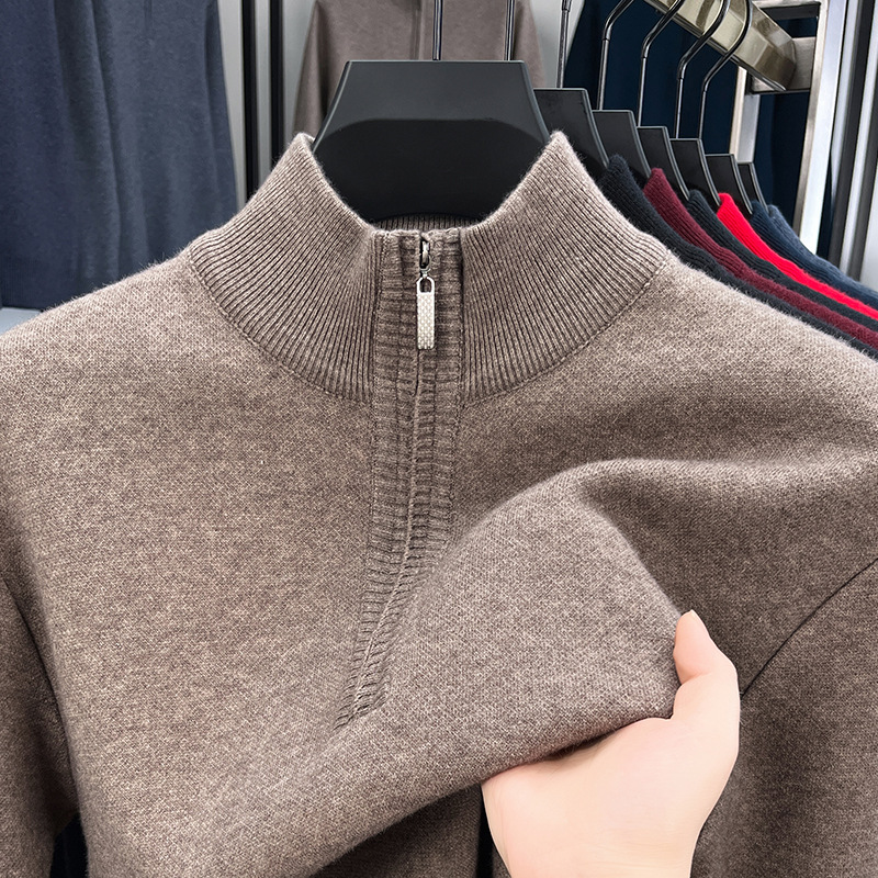 Главная страница > Высококачественный мужской вязаный свитер, с длинными рукавами, утолщенный, однотонный, с воротником-стойкой на молнии, оптовая продажа одежды для мужчин среднего возраста