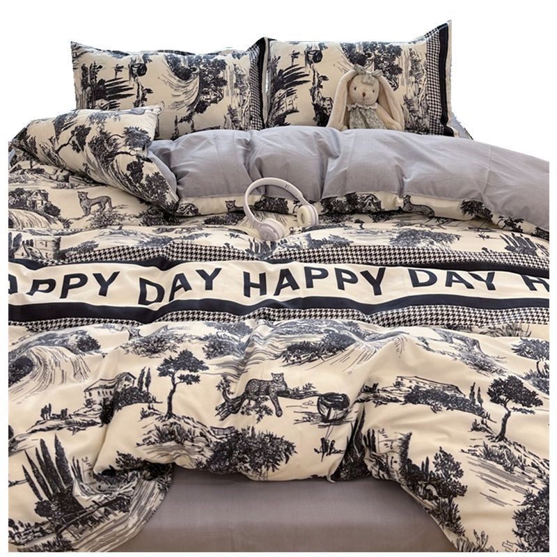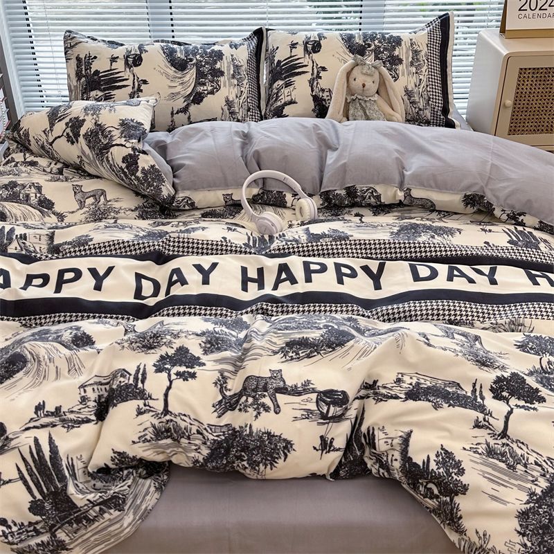 Главная страница > Модный легкий роскошный комплект постельного белья из четырех предметов в американском стиле с росписью тушью, утолщенный черный пододеяльник для мужчин, комплект из трех предметов 20.