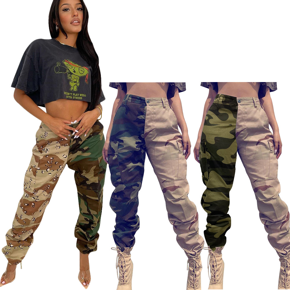 LS6490 Amazon AliExpress Европейская и американская Женская мода Личность Столкновение цвета шить камуфляж