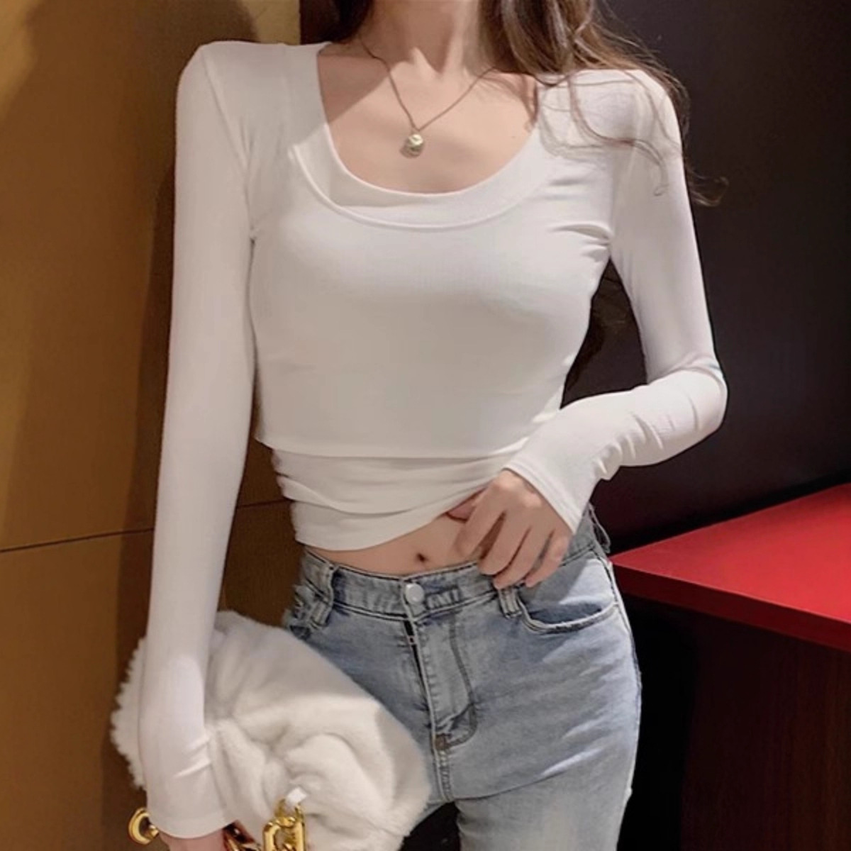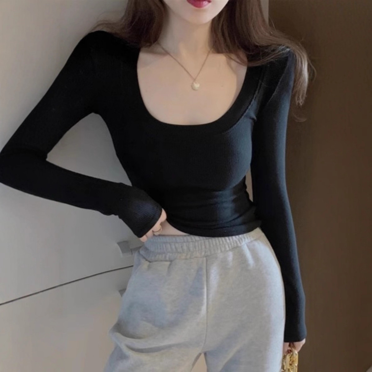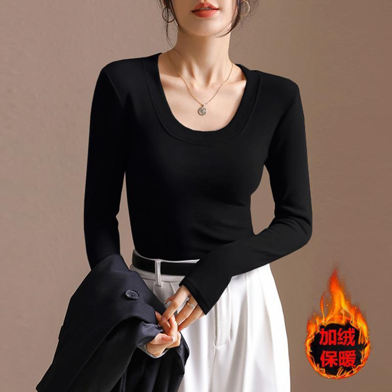 Главная страница > Футболка с длинными рукавами в японском стиле, Женская осенне-зимняя утолщенная рубашка с флисовой подкладкой Maillard, чистый стиль желания, с U-образным вырезом, приталенная внутренняя Повседневная Нижняя рубашка